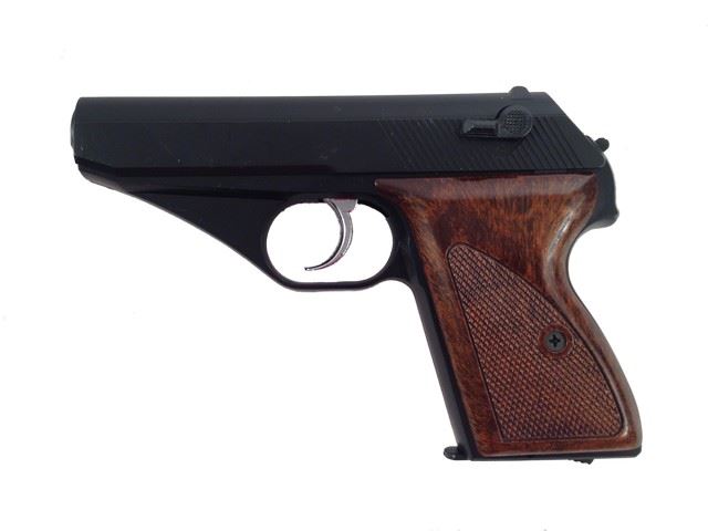 Black with brown wood grain style handle plastic gun, used during the making of the movie ( 6"x4.5").