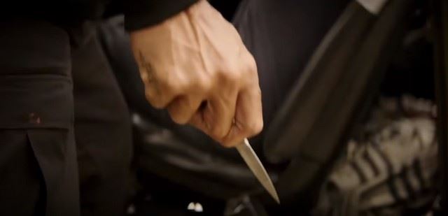 Sleepless -Screen used, rubber knife with silver colored rubber blade and black plastic grip, featured prominently in the scene in which Vincent's (Jamie Foxx) son Thomas (Octavius J. Johnson) is kidnapped. The knife is used by one of the kidnappers to stab Vincent in the side as he tries to stop the assault (7.5" long open) Condition may vary slightly.