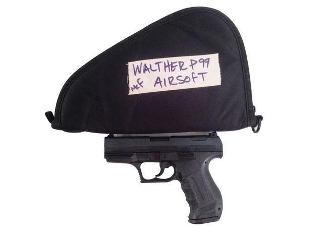 Sleepless -McFerrin (Tim Connolly) black metal slide action 'Walther P99' Airsoft pistol with canvas carrying case (7"x5")