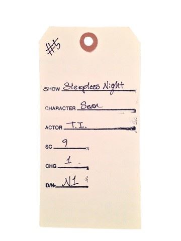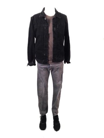 Sleepless -Sean (T.I.) screen worn, hero, 'American Apparel 50/25/25' heathered light brown tee (S), 'Attacc Raw' grey, straight leg jeans, (33/32), 'All Saints' denim jacket (L), and 'Nike' black mesh and grey rubber low top sneakers (9.5). Featured in the police station when Sean and Vincent (Jamie Foxx) are given the assignment to investigate their own robbery. Includes wardrobe tag.