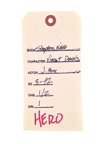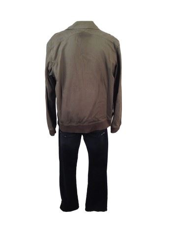 Sleepless - Vincent Downs (Jamie Foxx) screen worn, hero change #1, including:'Rag & Bone' charcoal knit crew tee (M), 'Hudson' straight jeans (36/32), 'Koto' army green 4 pocket jacket (L), 'Polo' distressed black leather belt (38), 'Prada' black leather lace up sneakers (10.5), 'Spanx' black tank (M/L), and neoprene gloves. Includes 2 wardrobe tags. This costume was featured prominently in the opening heist sequence.