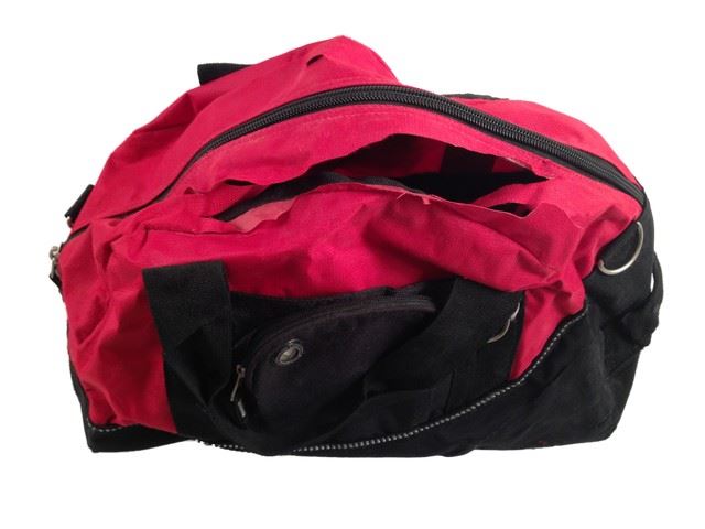 Sleepless -Screen used, slit in the top for production 'Columbia' canvas, red and black duffle bag, featured prominently when Vincent (Jamie Foxx) breaks the zipper and uses it as a carry bag for the fake cocaine he delivers to Novak (Scoot McNairy), who will later slice the bag open to test the product (20"x13").