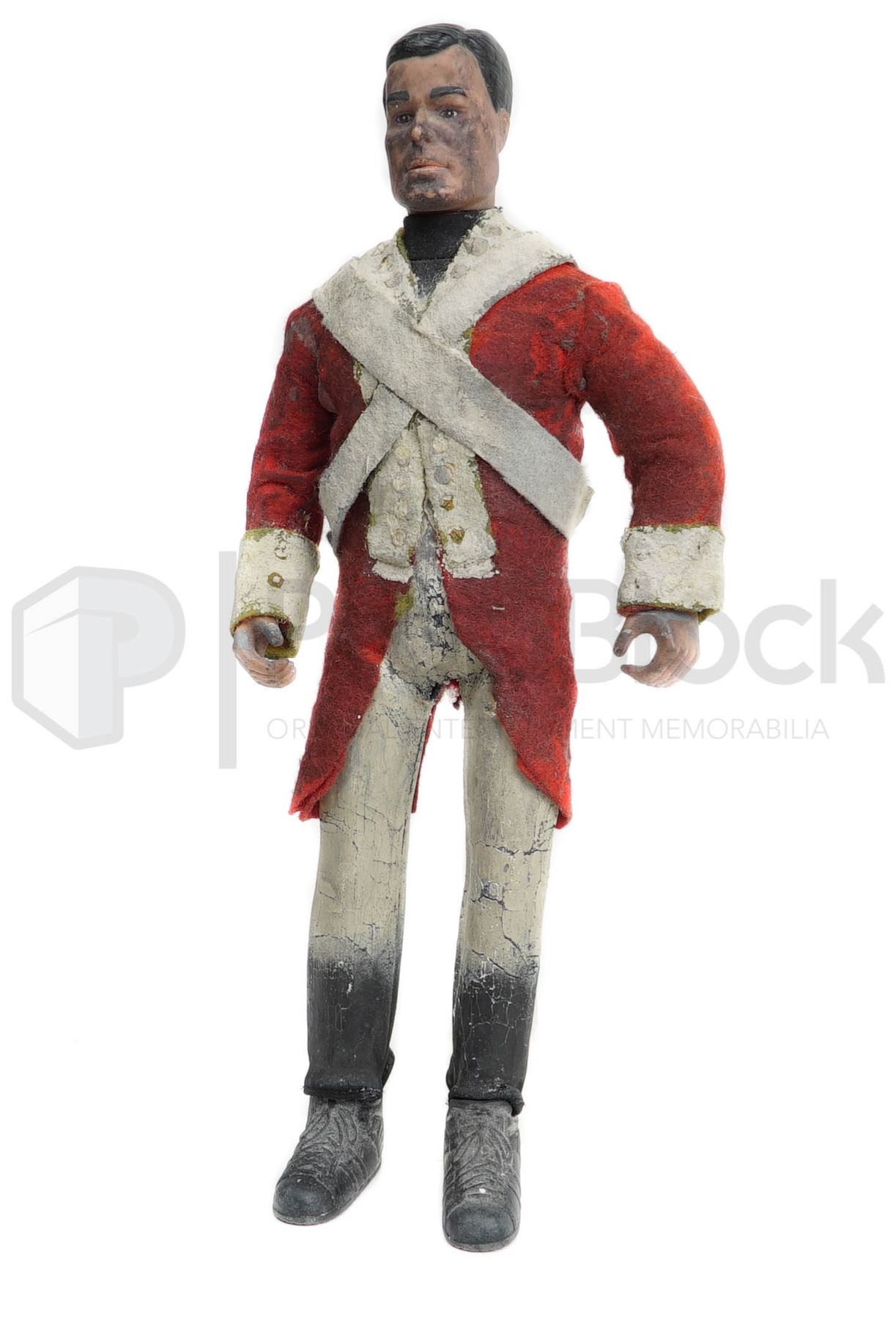 Miniature soldier created for use in Tim Burtons 1999 horror film Sleepy Hollow. This style soldier were created for the battle sequence where the headless horseman engages in battle with the British. This piece features a custom made uniform on a plastic 12" action figure and remains in excellent, production used condition.