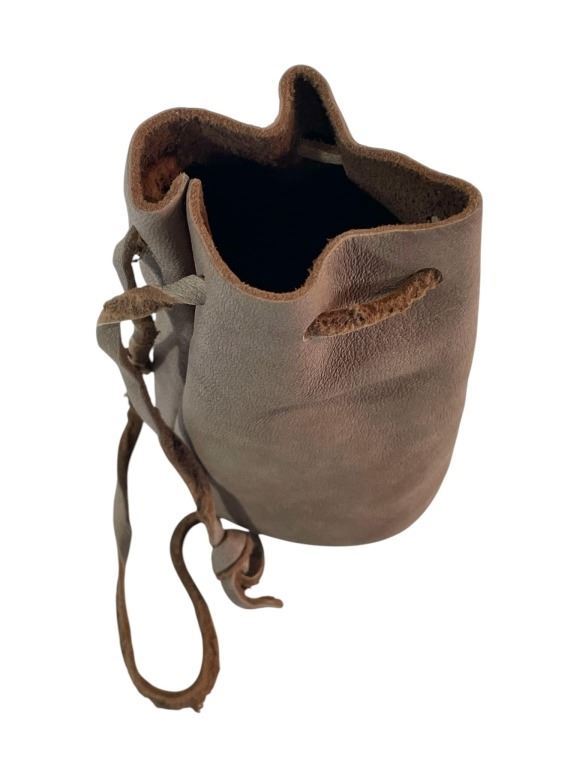 Custom made leather pouch with resin musket balls used by Ichabod Crane, played by Jeremy Owens (Season Three) in the production of the supernatural drama television series 'Sleepy Hollow' (2013–2017), where Ichabod Crane is resurrected and pulled two and a half centuries through time to unravel a mystery that dates all the way back to the founding fathers.