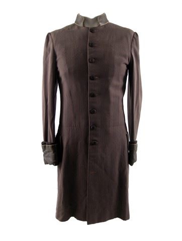 Direct from Tim Burton's Sleepy Hollow (1999) is Thomas Killian (Sean Stephens) screen used distressed grey with leather at the neck long sleeve button front long coat. Thomas is inscribed inside the collar of the coat.