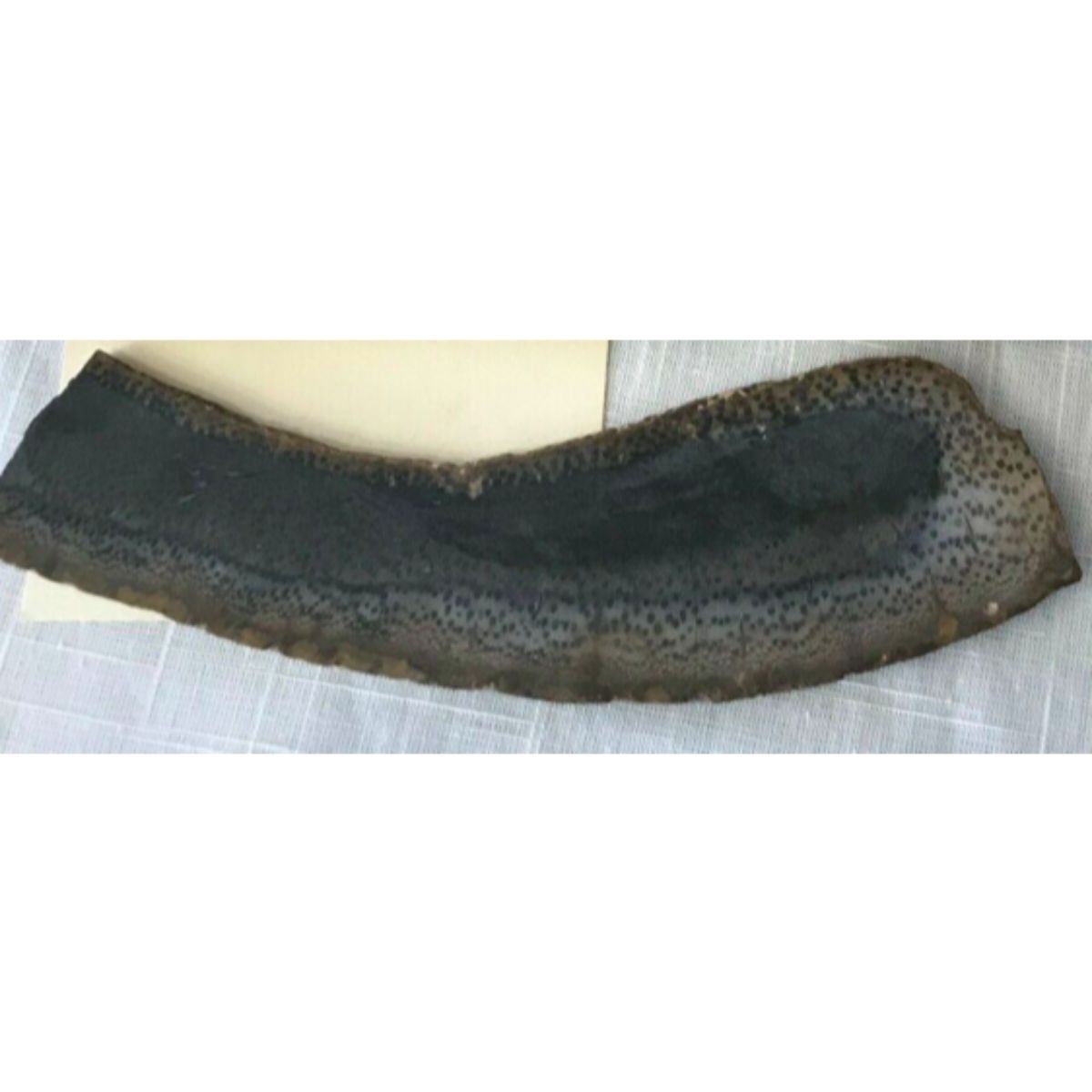 A large & unique specimen, PetrifiedPalm Wood Slice, museumdisplay item. 7" L X 1 3/4" W & 1/4" thick slice. Comes with original display card.
