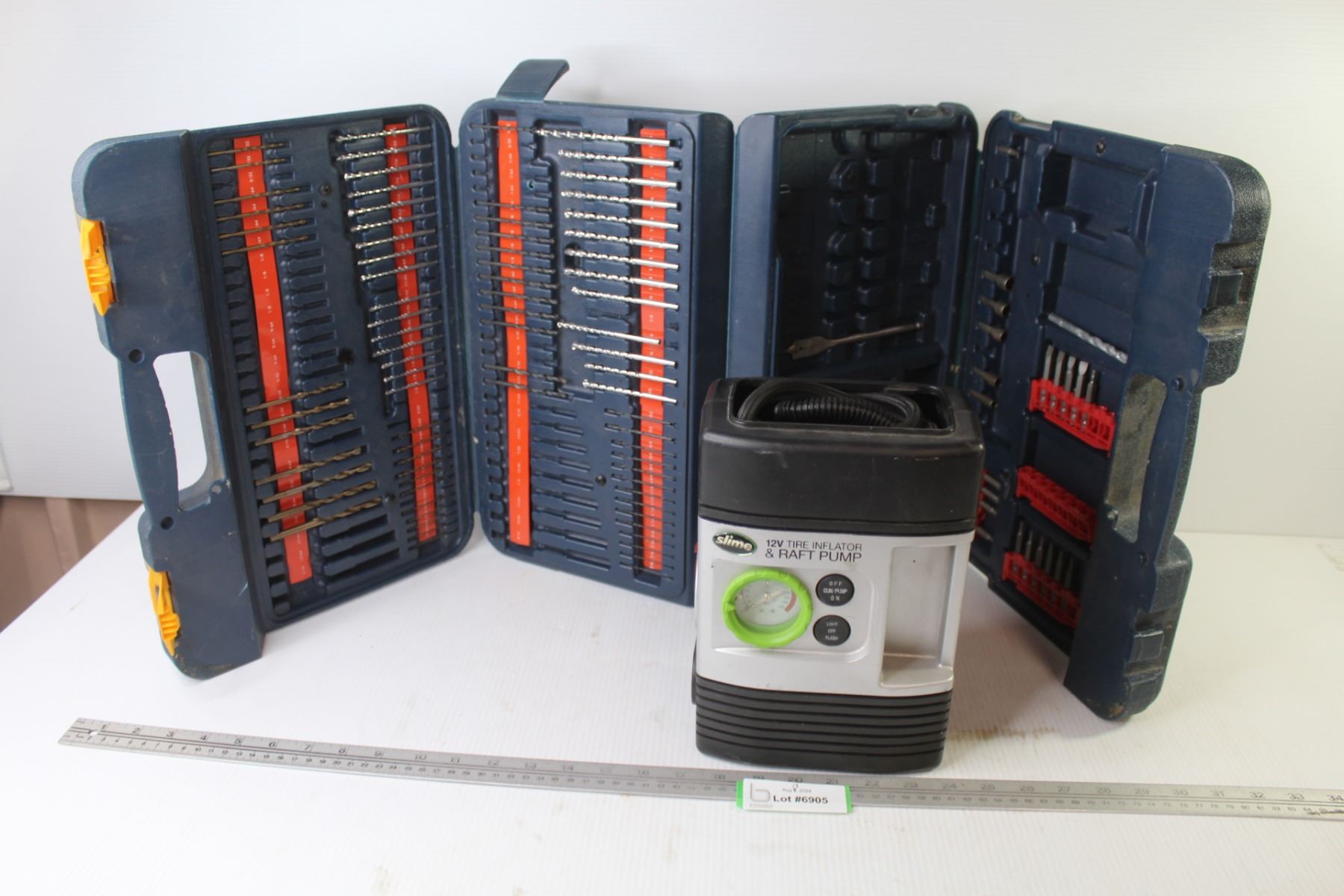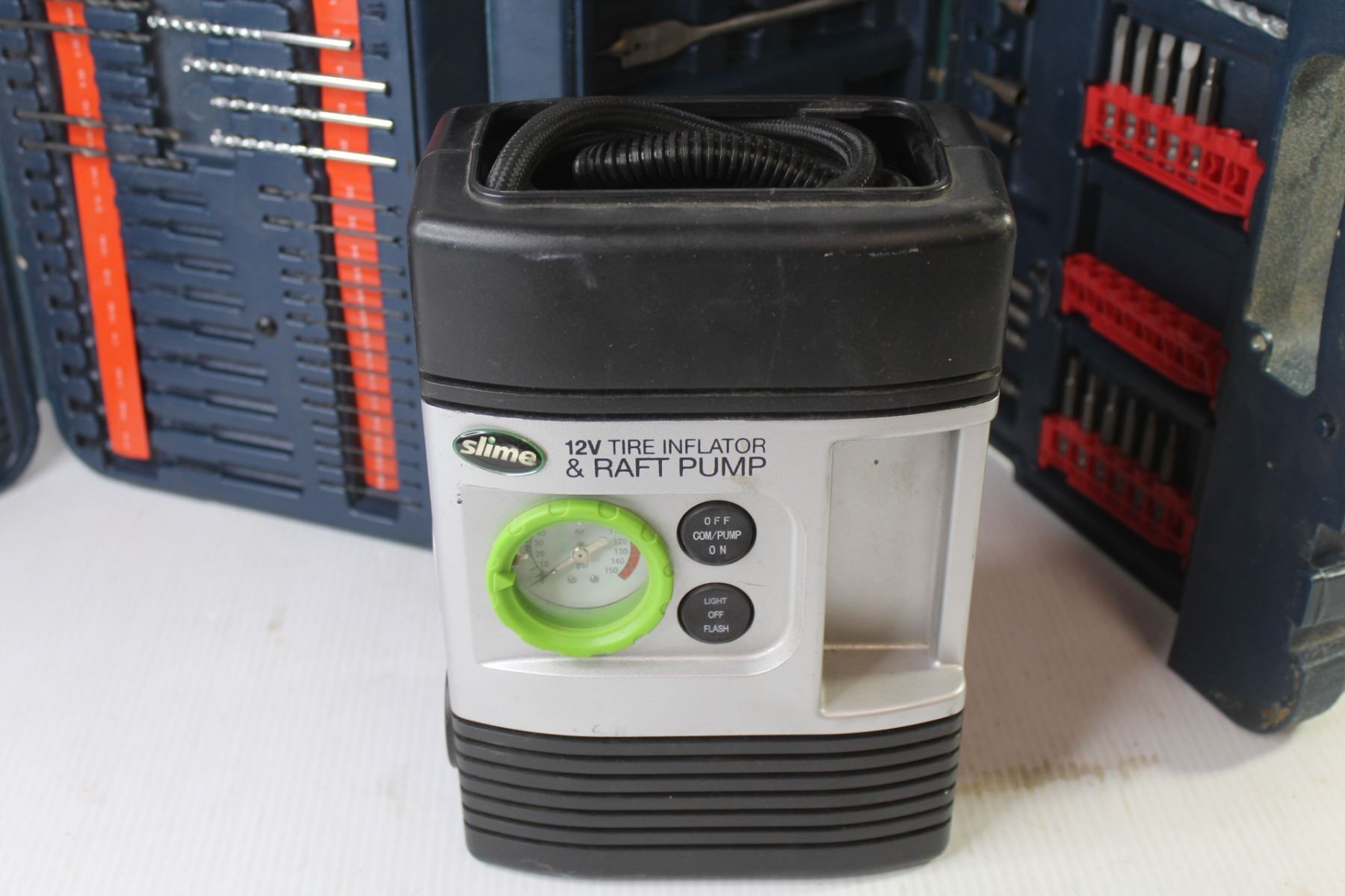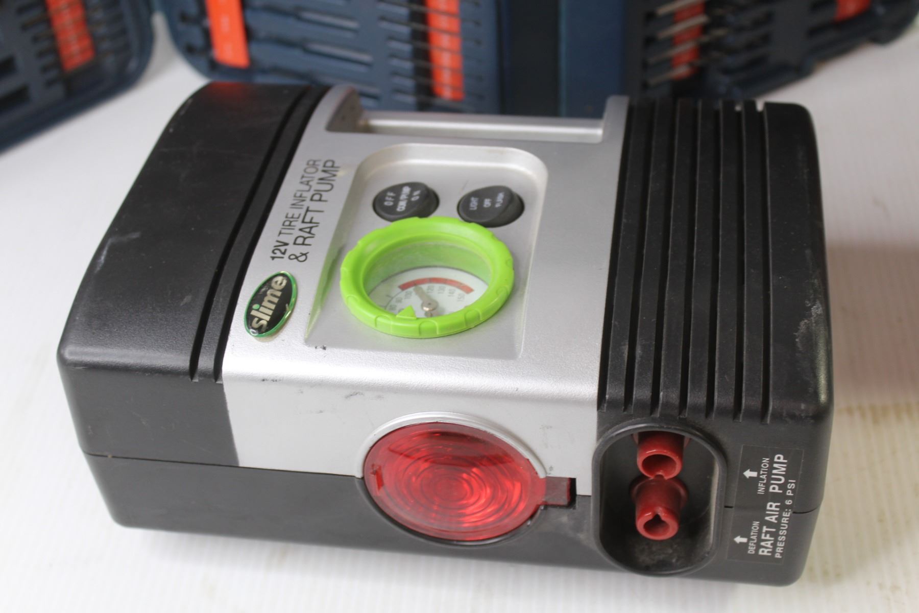 Slime - 12v Tire Inflator & Raft Pump (untested) - Ryobi Drill & Driver Set in Case (incomplete)
