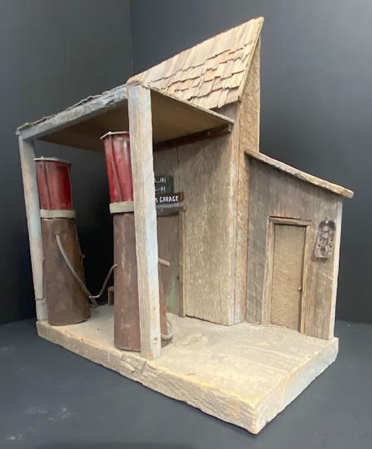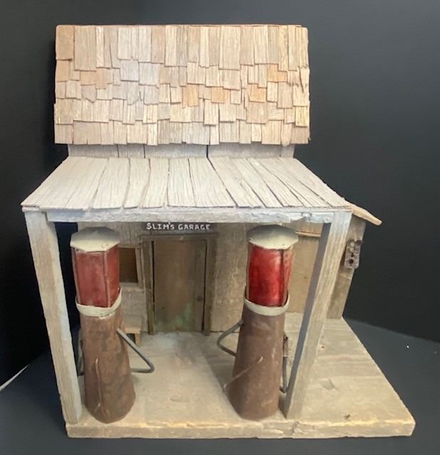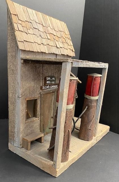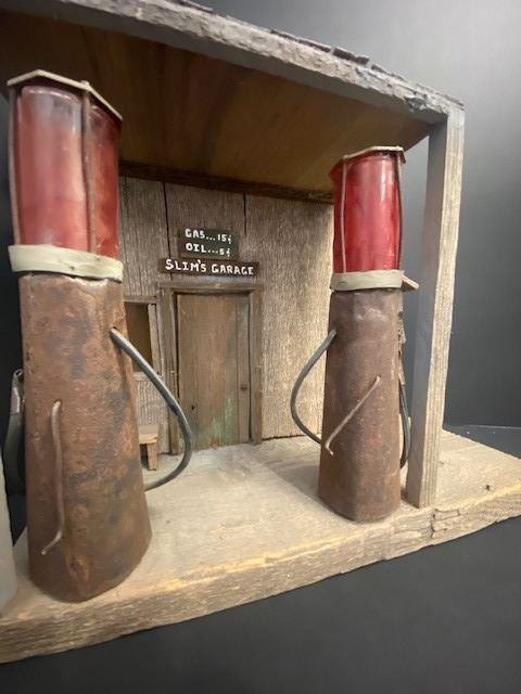 If you have ever traveled the Backroads of America you may have remember seeing stations like this representation. The Hand Cranked Pump makes me believe that the Artist was targeting 1920. With 15-cent fuel could be 1930. But it was so much fun stopping at those places for a Coke and Candy Bar. The Bathrooms were necessary but always an experience.
