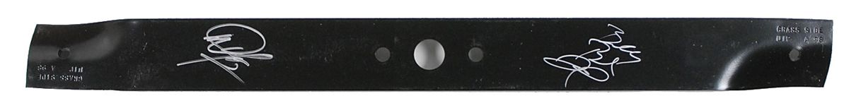 Unused black lawn mower blade, 21.75? long, signed in silver ink by Billy Bob Thornton and Dwight Yoakam. In very fine condition.