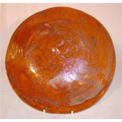 Slip decorated redware plate. Measures 11 1/2" in dia. and has wear to rim and glaze losses.