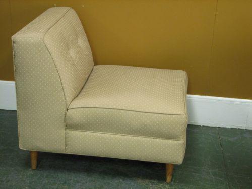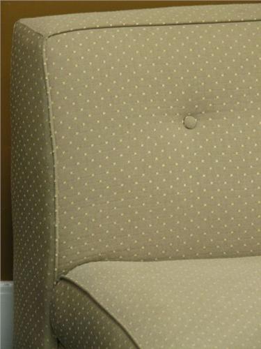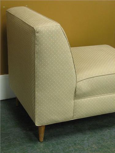 Pair of Vintage Slipper Chairs with pale green dotted fabric. Condition: No damage noted. Dimensions:
