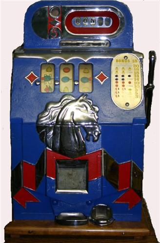 5 Cent, (1937) The Bonus was the major feature during this period. It kept the player inserting his coins for the big payoff of 18 nickels. Restored condition. The cabinet and mechanism are done correctly.