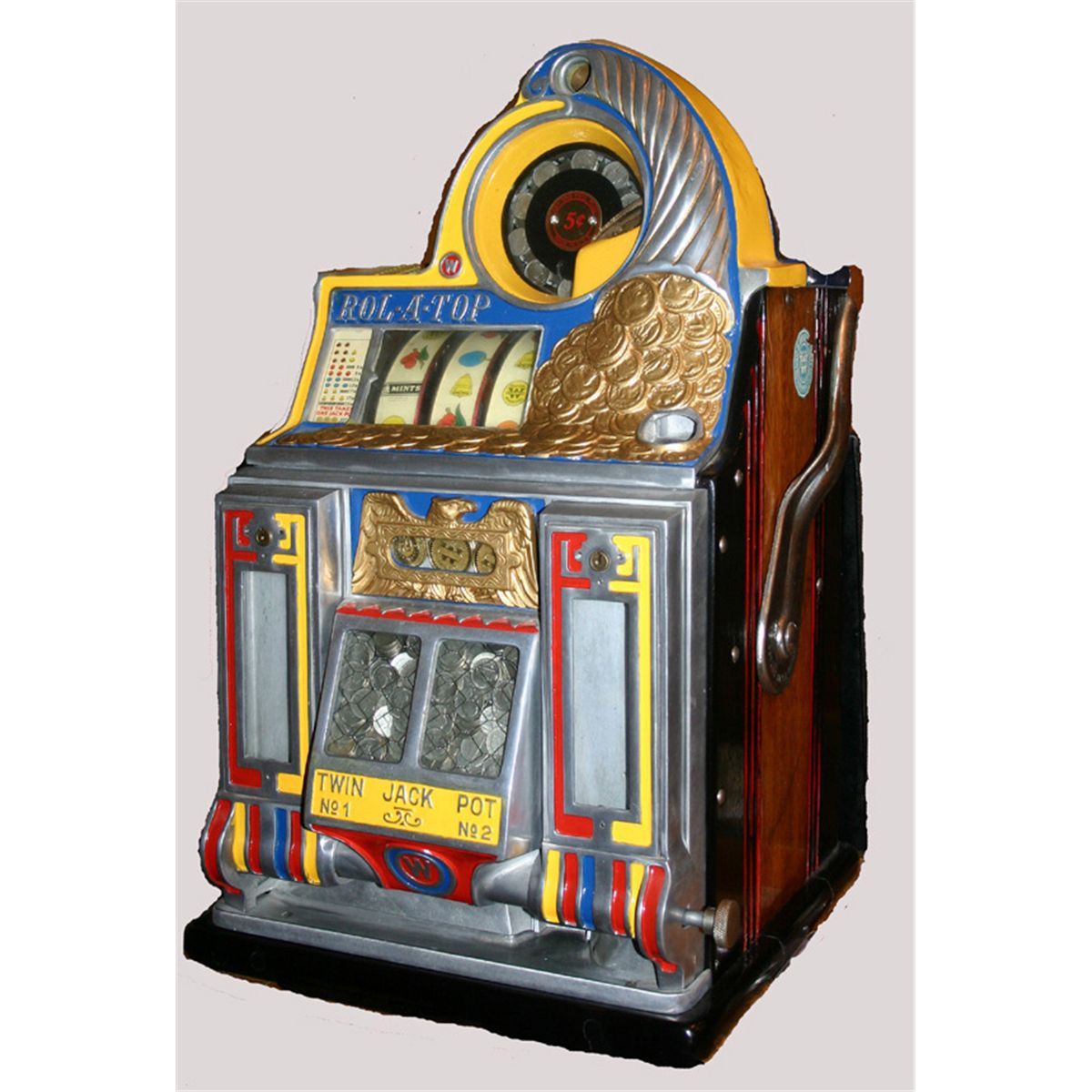 Rol-a-top Cornucopia Slot Machine. Works on nickel coin. Beautifully restored and ready to go.