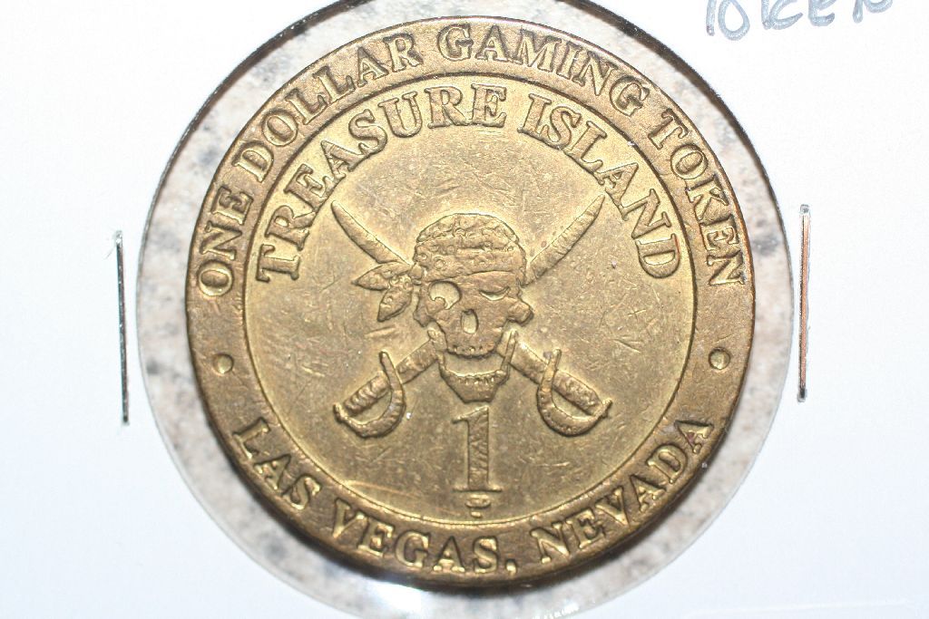 This lot is a $1 slot machine token from treasure island casino in las vegas, nevada