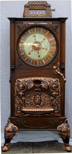 Upright Slot Machine - Caille 45 coin head with a very desirable Watling cabinet. Cabinet is in exceptional condition. There is no assembly from the head down, and there is no escalator or works. This one should provide you with a buying opportunity, especially if you are handy with fix-ups.