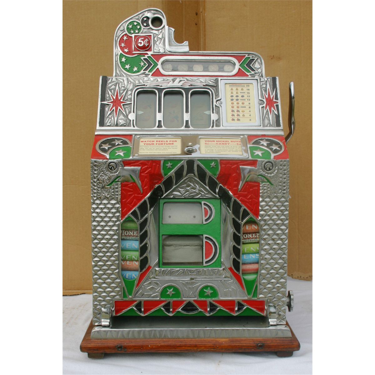 Slot Machine. Works on nickel coin. Very attractive finish. Mint Vendor.