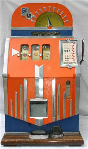 5 Cent. (1936) The Futurity offered new and unique payout features, guaranteed a partial refund if payout was not received within 10 plays. Nice machine. Older restoration.
