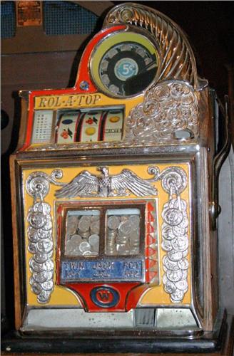 Watling Rol-a-top Horn of Plenty 5 cent slot. Nickel plated. Excellent condition.