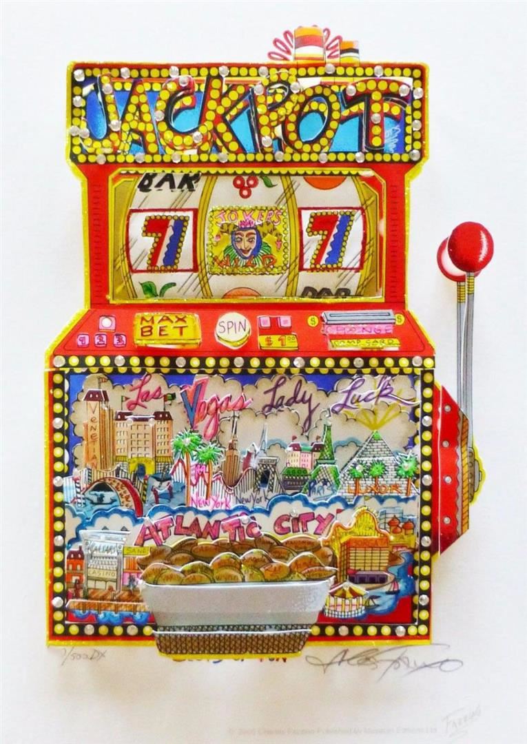 Slots of Fun (DX) by Fazzino, Charles. Limited Hand Signed 3 Dimensional Serigraph Must Ship Flat. Dimensions: 11 x 8.5 x 1.5. Excellent Condition.