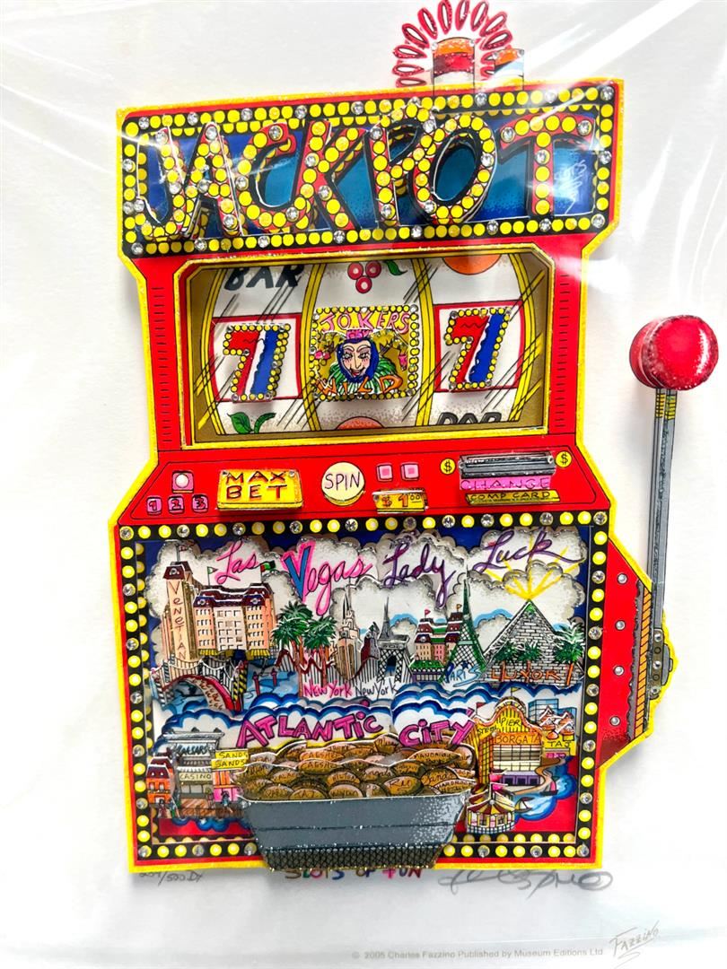 Slots of Fun (DX) by Fazzino, Charles. Limited Hand Signed 3 Dimensional Serigraph Must Ship Flat. Dimensions: 11 x 8.5 x 1.5. Excellent Condition.