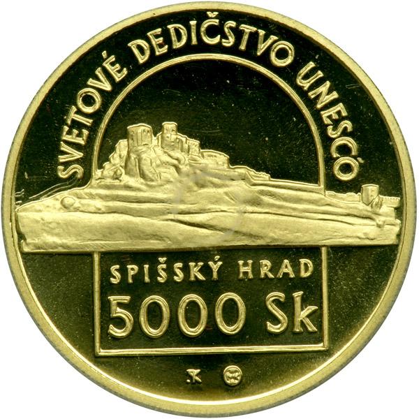Slovakia. 5000 Korun, 1998. KM-46. Weight 0.2749 ounce. Spissky Castle. Reverse: UNESCO historic site. In original case with certificate. Choice Brilliant Proof.