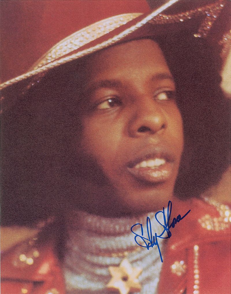 Color glossy 11 x 14 close-up photo of Stone, signed in blue felt tip. In fine condition, with some graininess to the image.