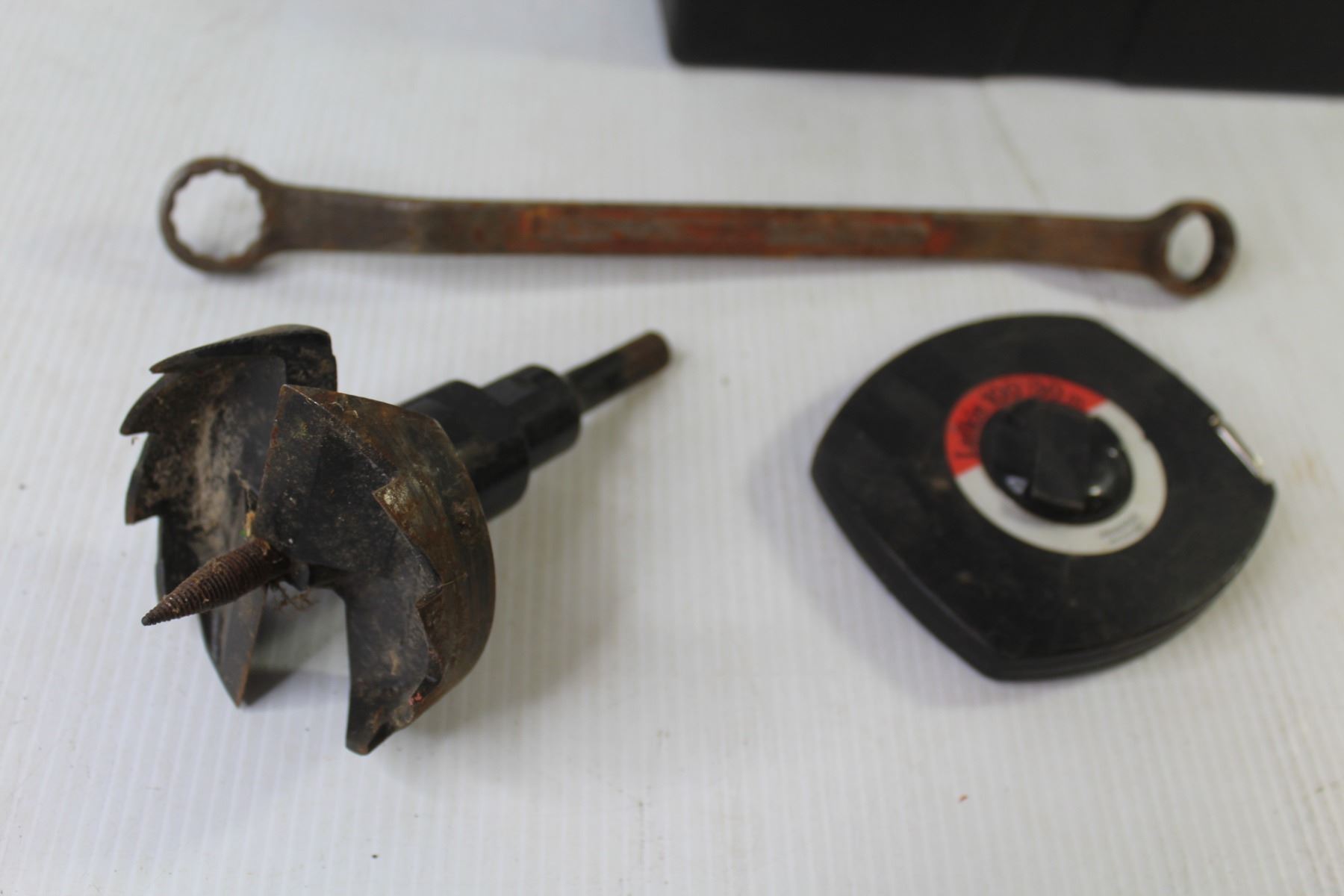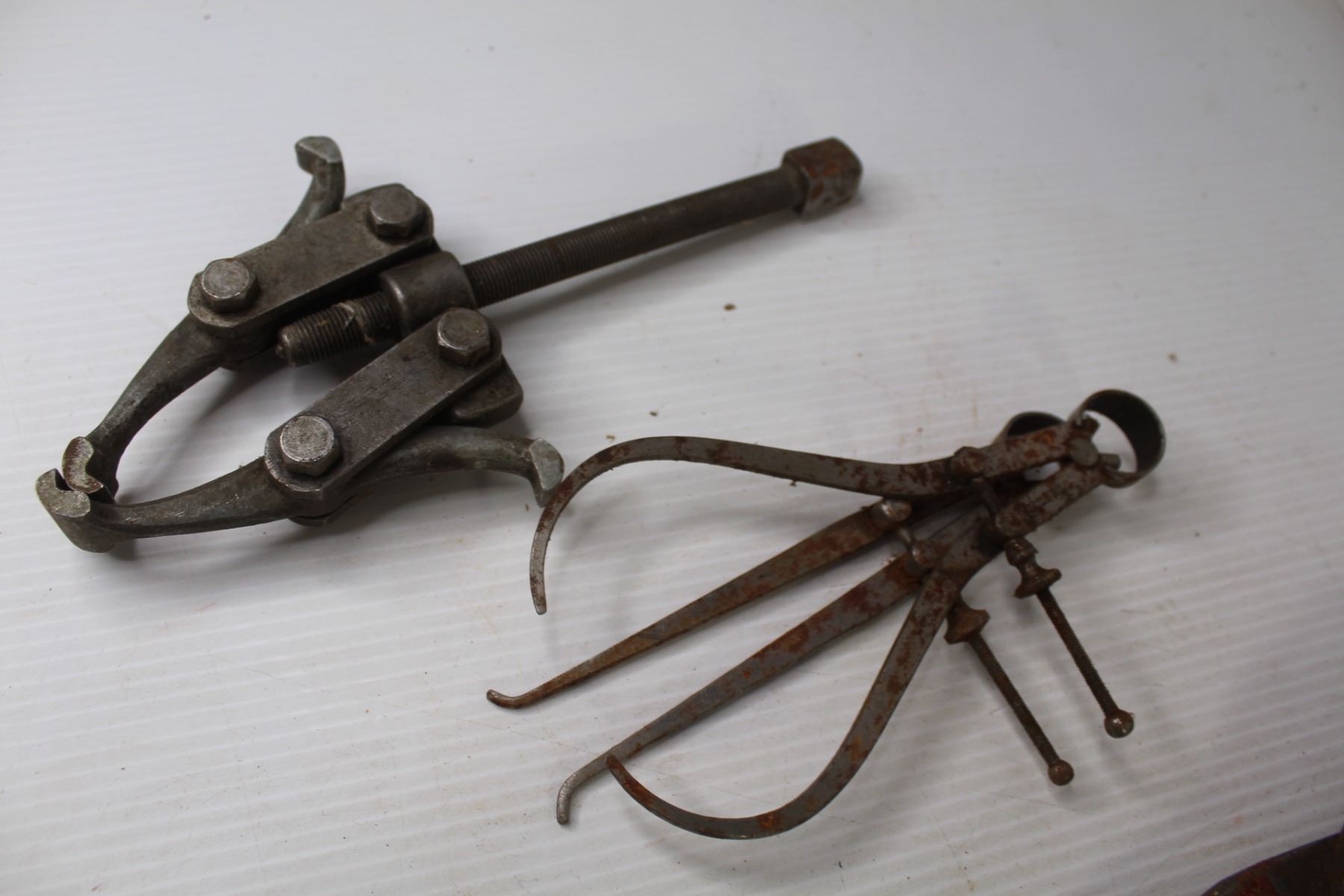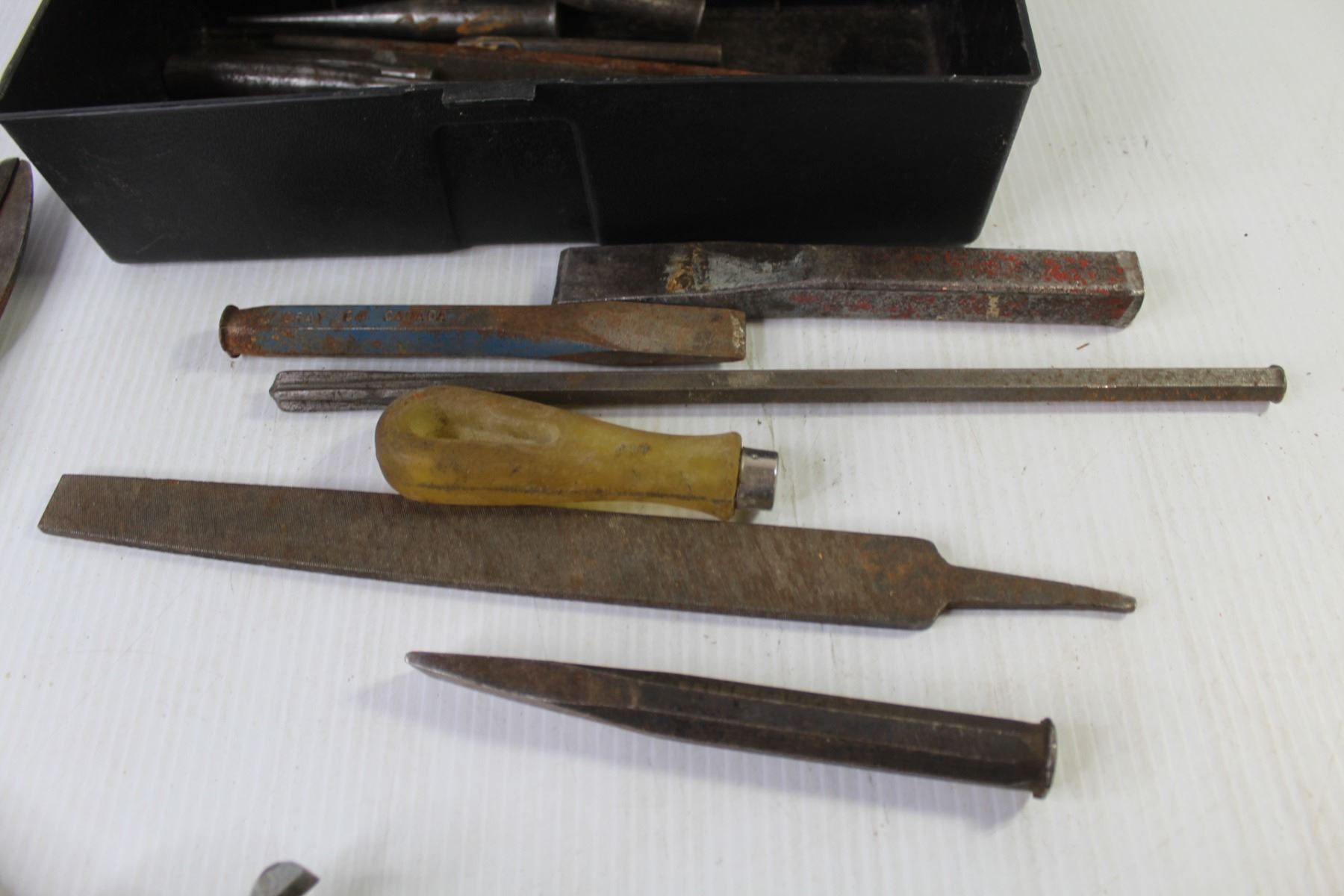 Sm Tool Box w/ Files & Cold Chisels - (2) Tin Snips - Gear Puller - 100' Measuring Tape - Misc. Items