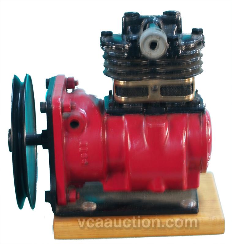 Small Air Compressor Display On Wooden Base - Restored