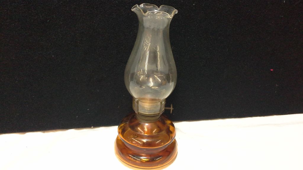 Small Amber Glass Oil Lamp (Made in Japan) (8" high with chimney)