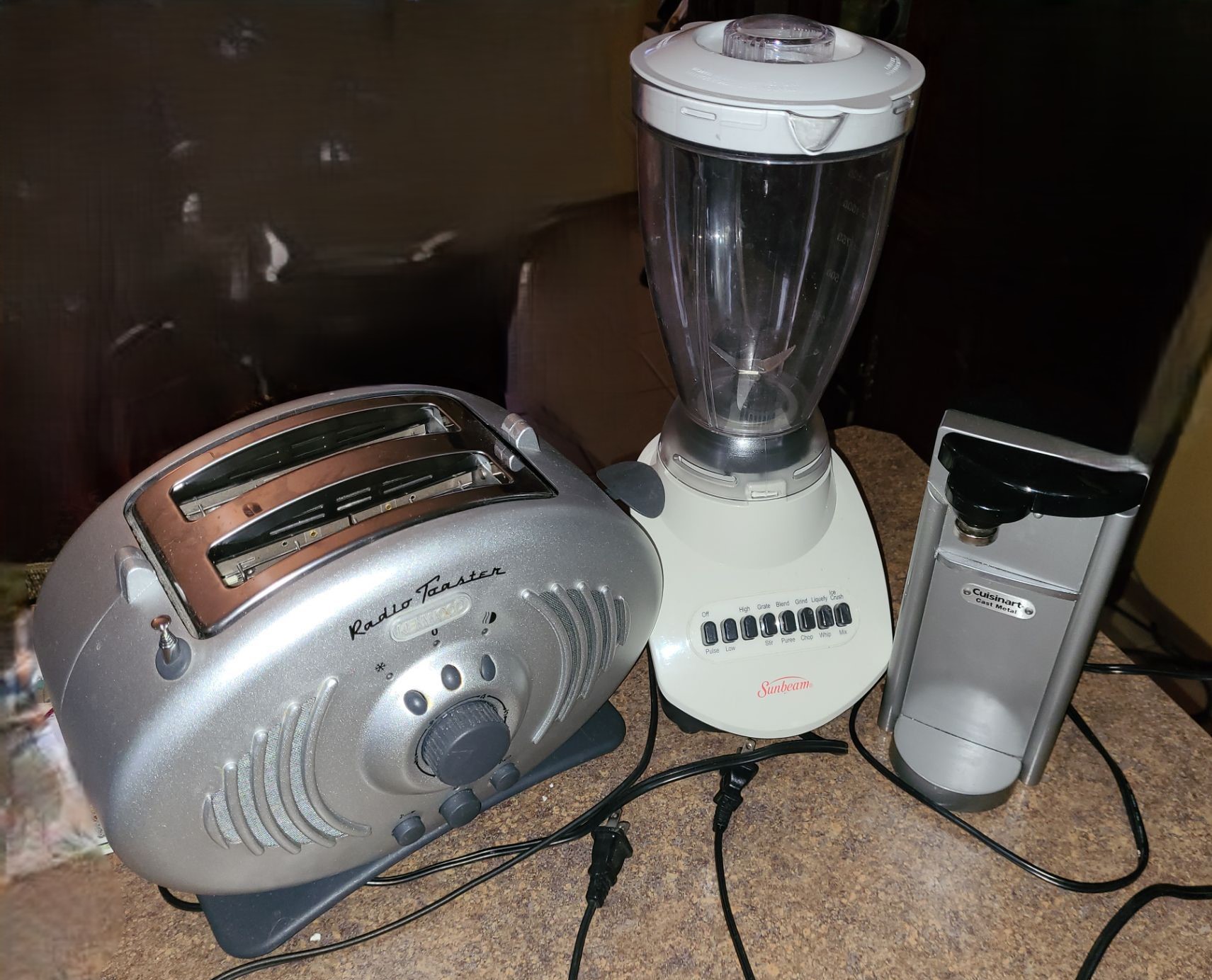 Small Appliances Including: Kenwood 2 Slice Radio Toaster, Sunbeam Blender and Cuisinart Can Opener