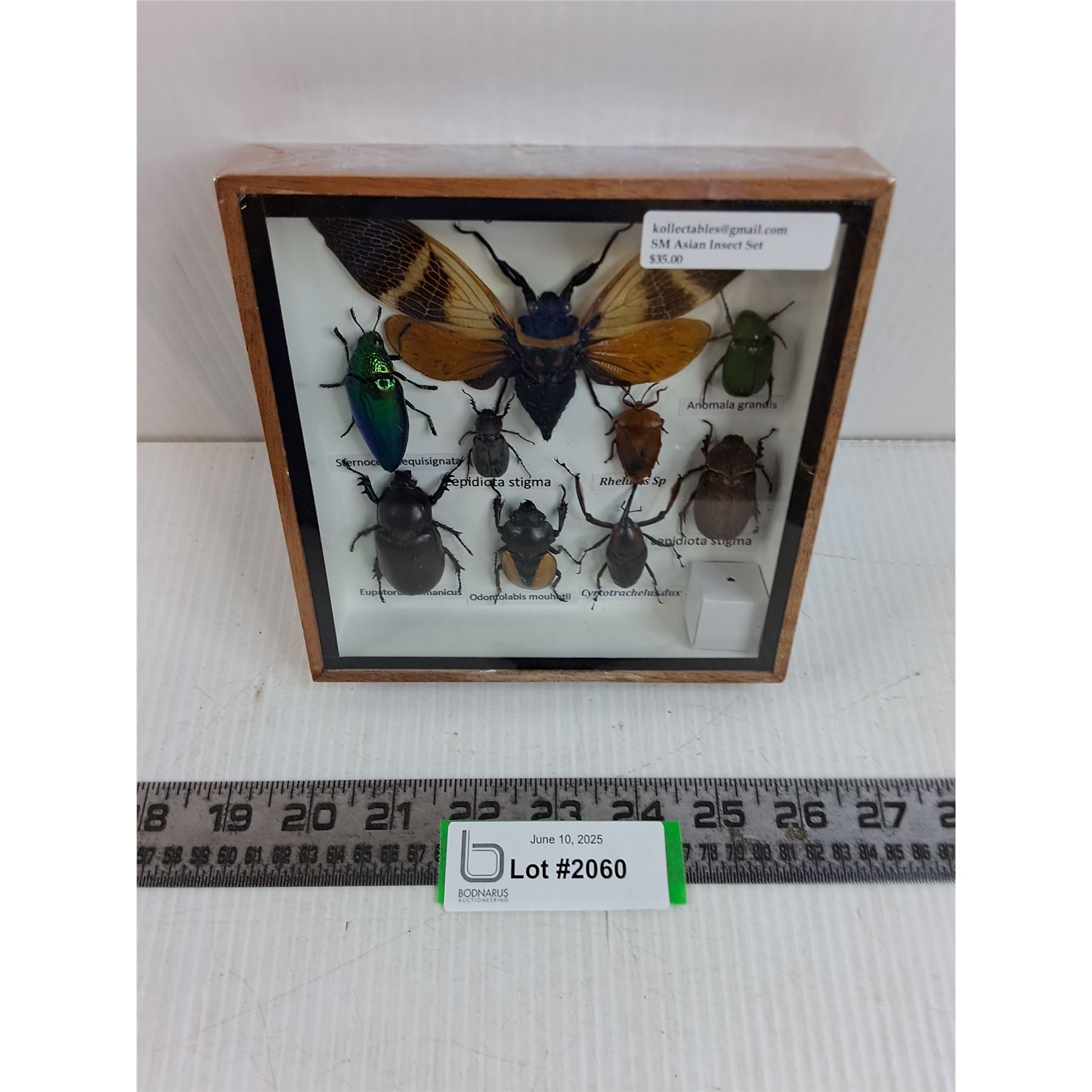 Small Asian Insect Set in Display Case - 6" x 6" Formaldehyde Smell- PICK UP ONLY