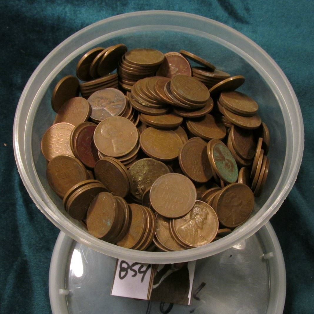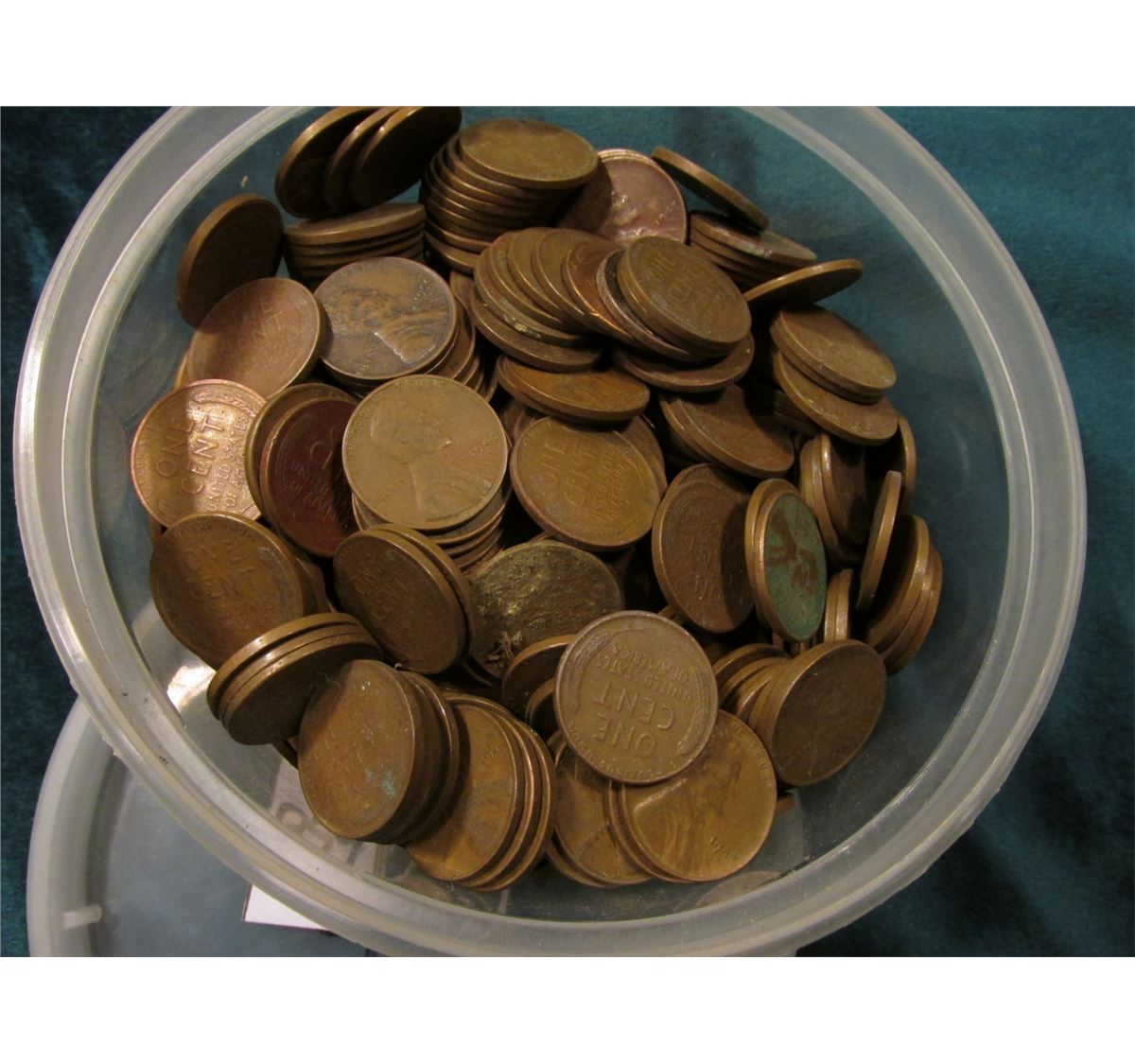 Small Berry Plastics Container full of 1940 era U.S. Wheat Cents. I never counted these so use your