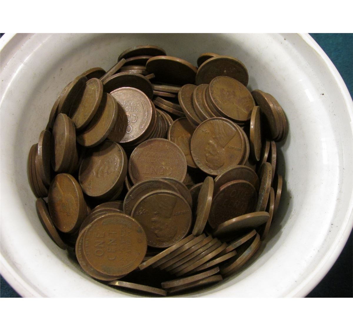 Small Berry Plastics Container full of 1940 era U.S. Wheat Cents. I never counted these so use your own judgement.