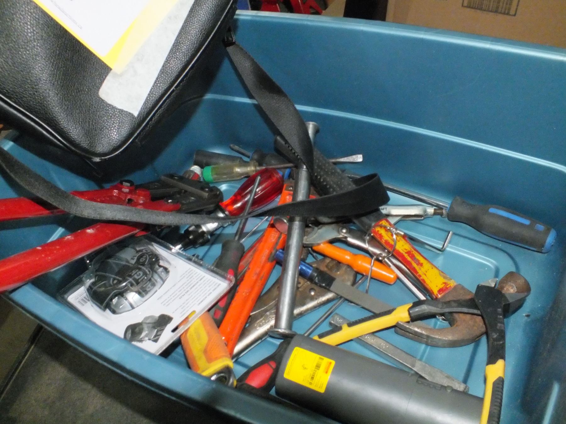 Small Bin Of Mixed Tools, you get Screwdrivers, bolt cutters, Hammers, wrenches...RCMP Theft Recovery...Used