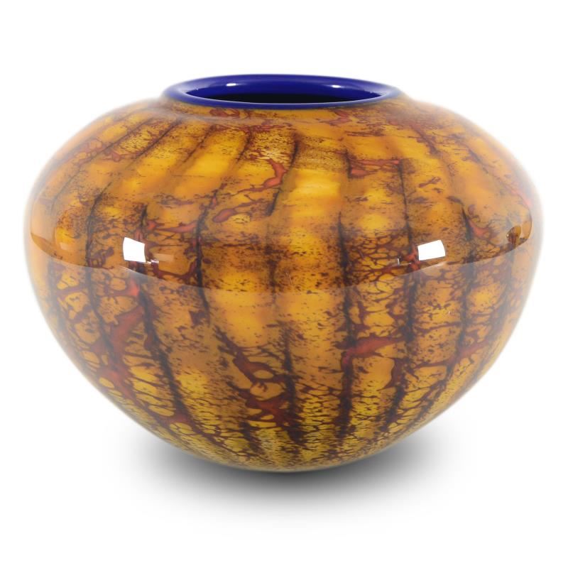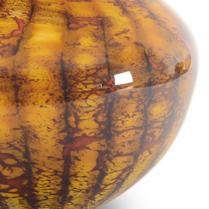 This hand blown "Small Blatik Sphere" sculpture combines sand-etched exteriors with an elegant lip accent and is hand signed by GartnerBlade Glass. Measures approx. Measures approx. 7.5" (diameter) x 5" (height); 2 lbs. (weight).