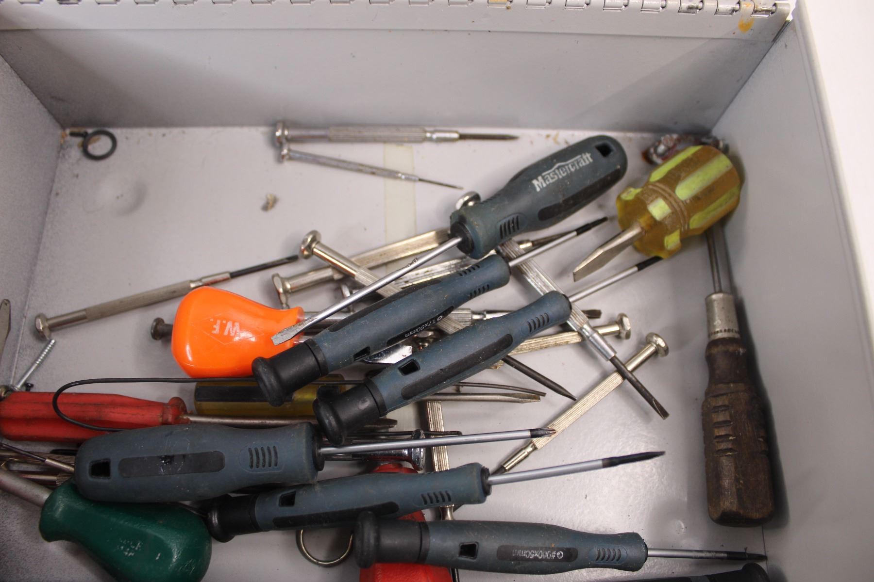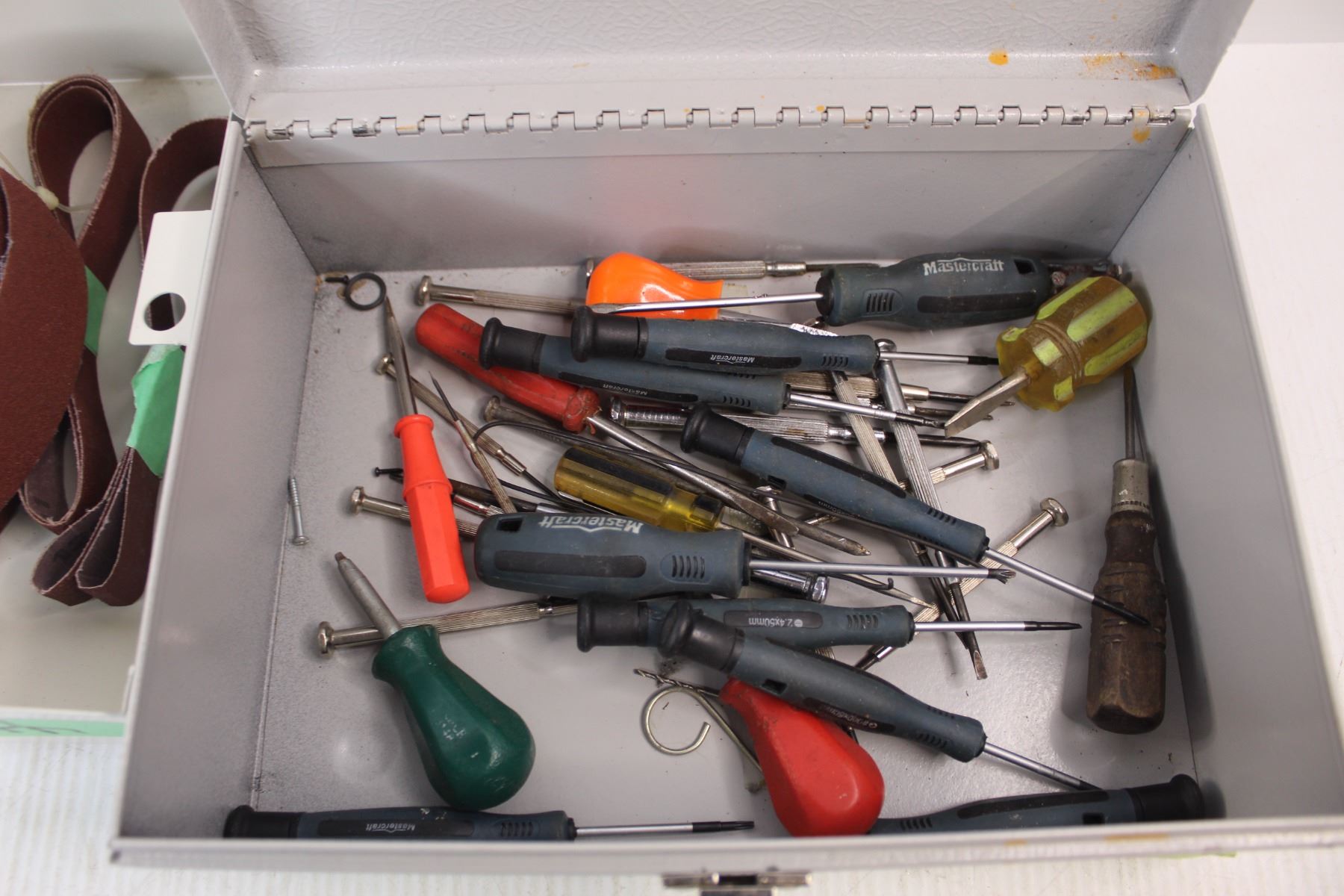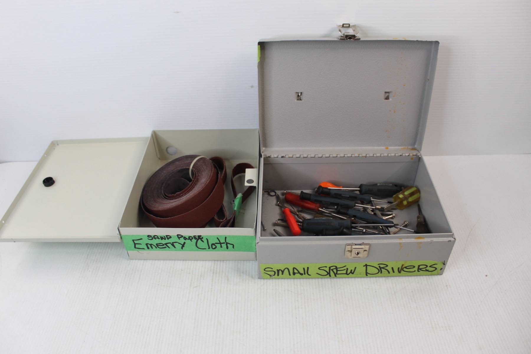 Small Breaker Panel Box w/ Emery Cloth, Cash Box Full Of Small Screw Drivers