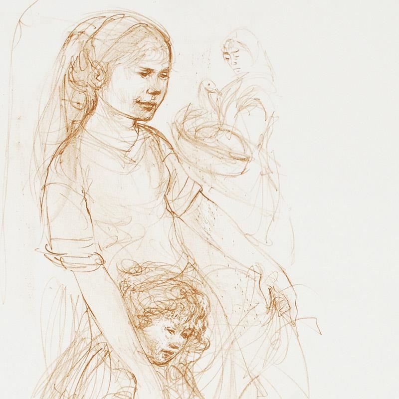 Small Breton Woman with Child by Hibel (1917-2014). "Small Breton Woman with Child" is a limited edition lithograph on paper, numbered and hand signed by Edna Hibel (1917-2014). Includes Certificate of Authenticity! Measures approx. 10" x 15" (with border