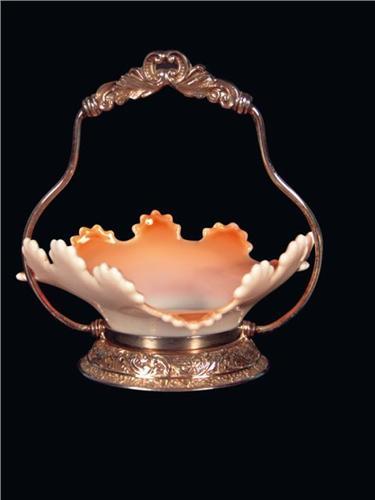 Small Brides Basket, unusual small size. Marked Rockford Silver Co., Quadruple plate. No chips or cracks. 5 1/2 inches tall.