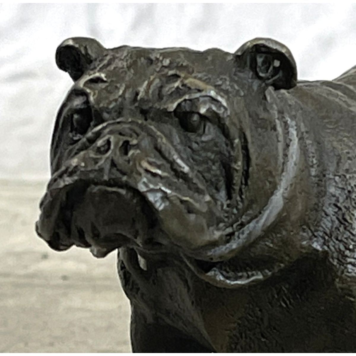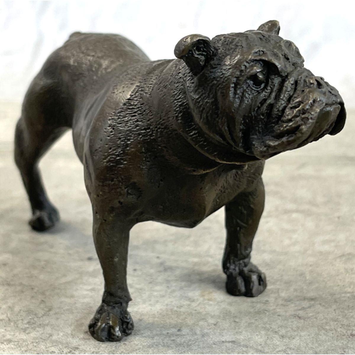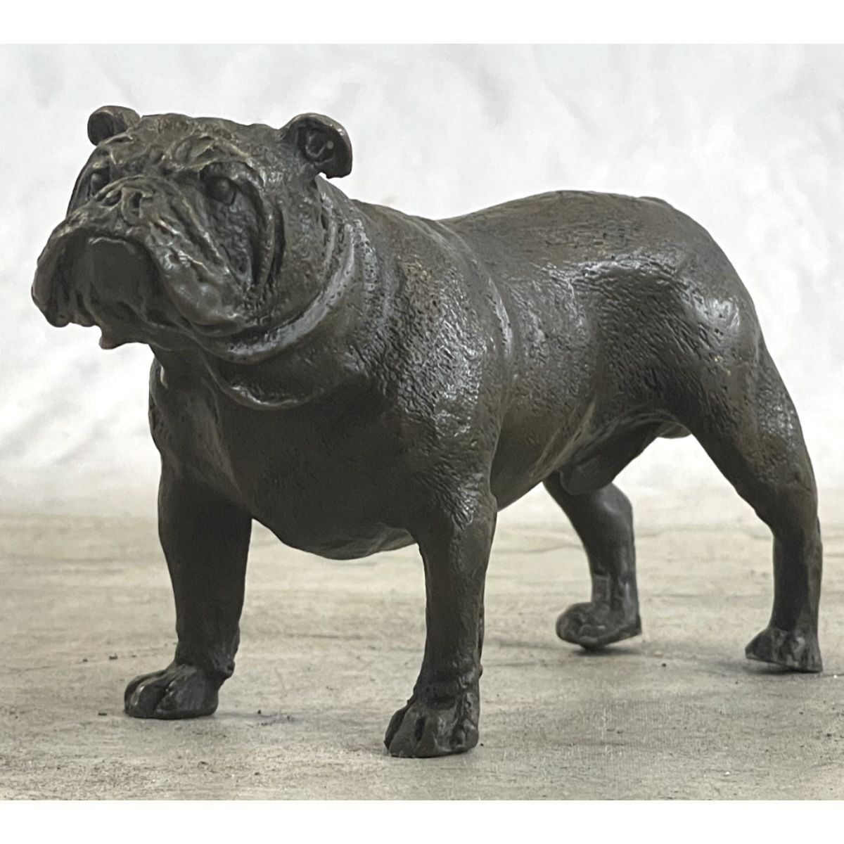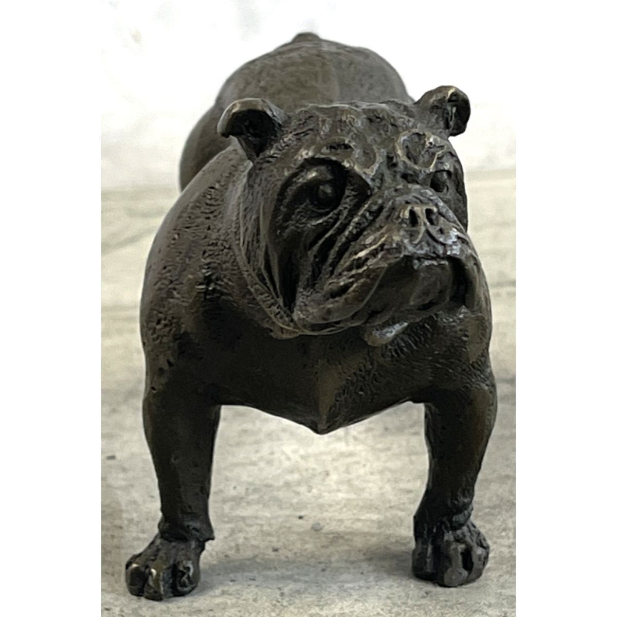 Small bulldog figurine. Lost wax casting method bronze, with brown patina. 3" H X 6" W. 2lbs.