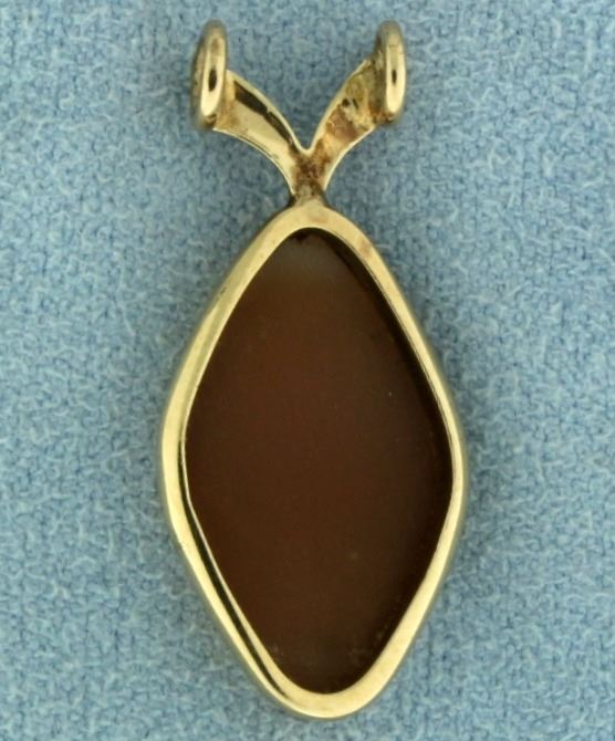 In 14k yellow gold. 1 1/8" long with bale. Cameo is 19x10mm. 1.9g.