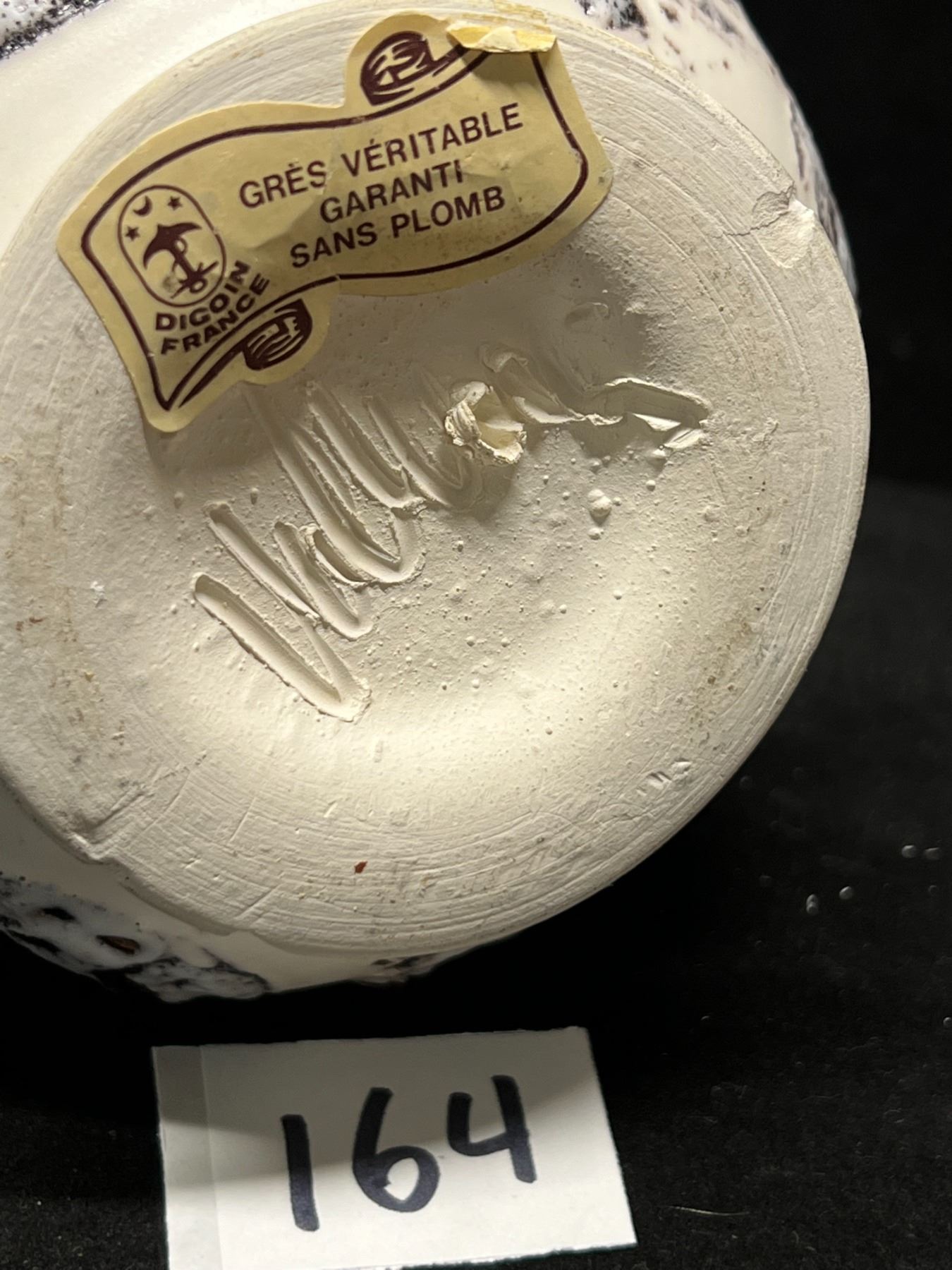 Small Ceramic Pitcher Vase France Signed w/label Has base chips Approx: 6.5"T