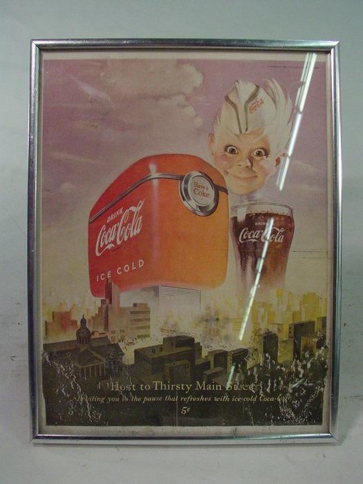 Small Chrome Framed Coca Cola AD with 1950's Style Milk Shake Print