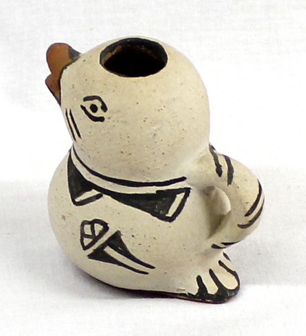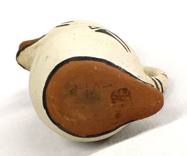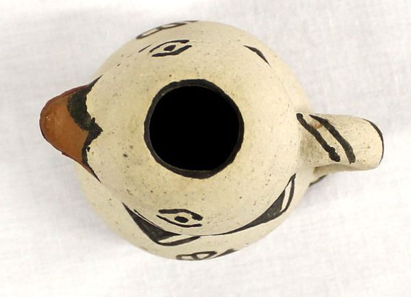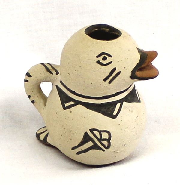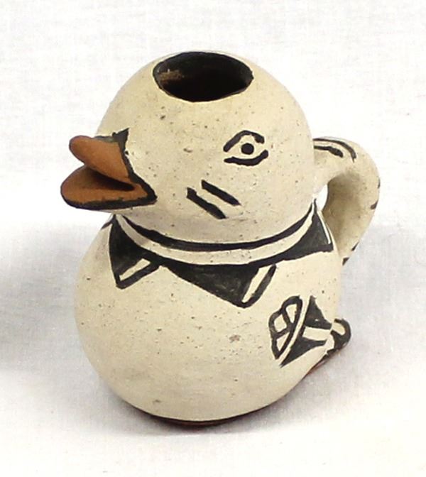 Small Native American Cochiti Pottery Duck Pitcher attributed to Laurencita Herrera, measures 1.5'' x 2.5'' x 2'', FYI “Laurencita Herrera (1912-1984) was a renowned Native American Cochiti Pueblo artist, specializing in traditional Cochiti figurative pottery called storytellers and her pottery vessels. She was actively making pottery between the 1930s through the 1970s and is known as one of the, "finest Cochiti potters of that era".