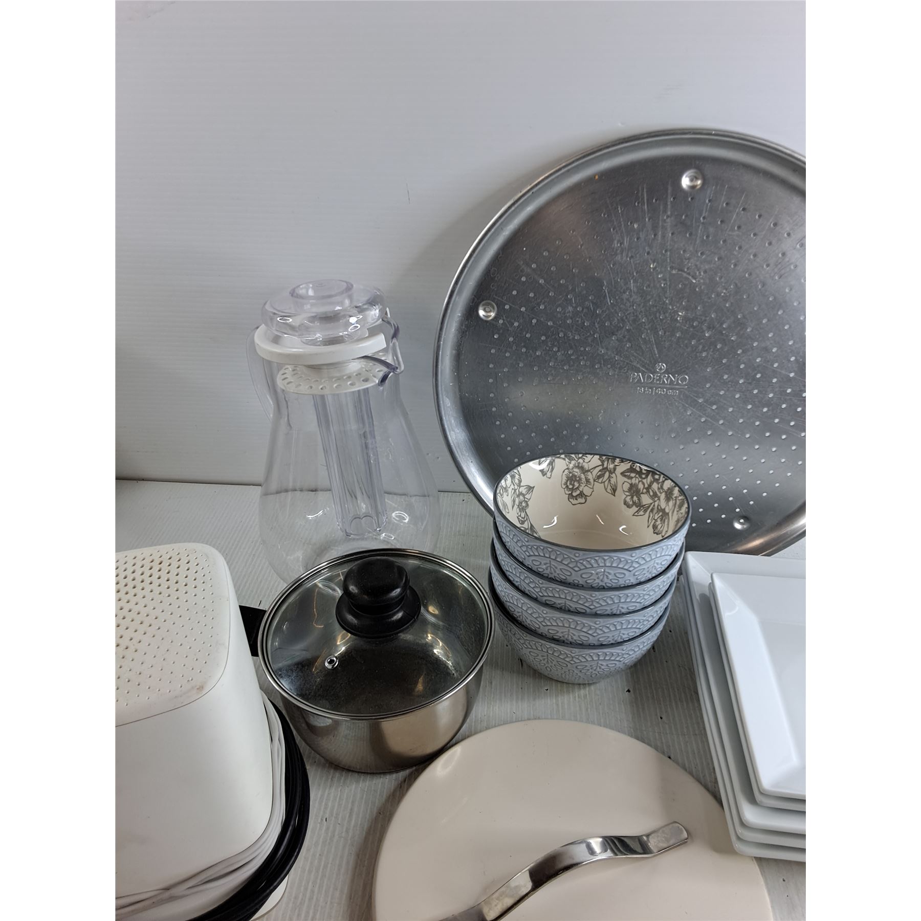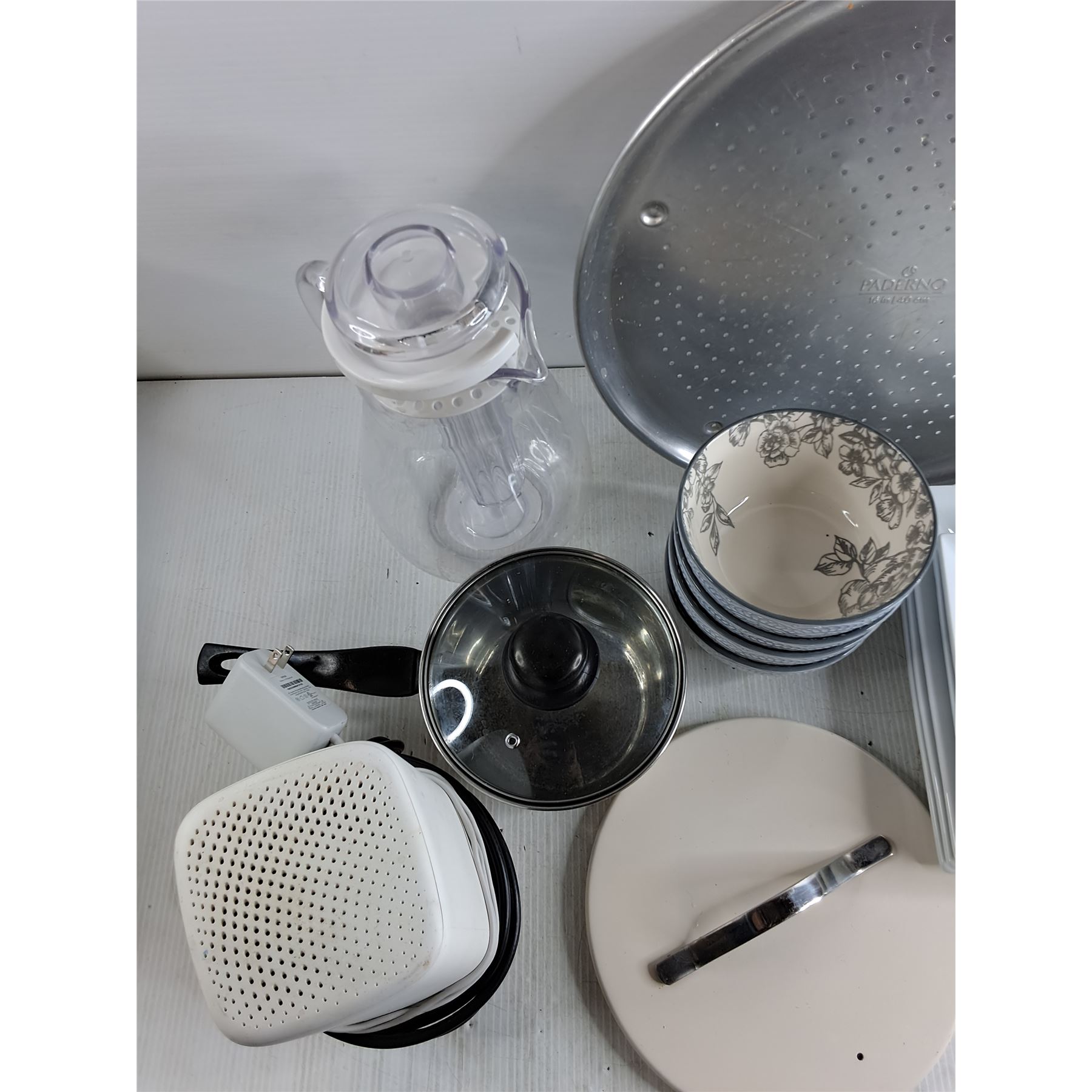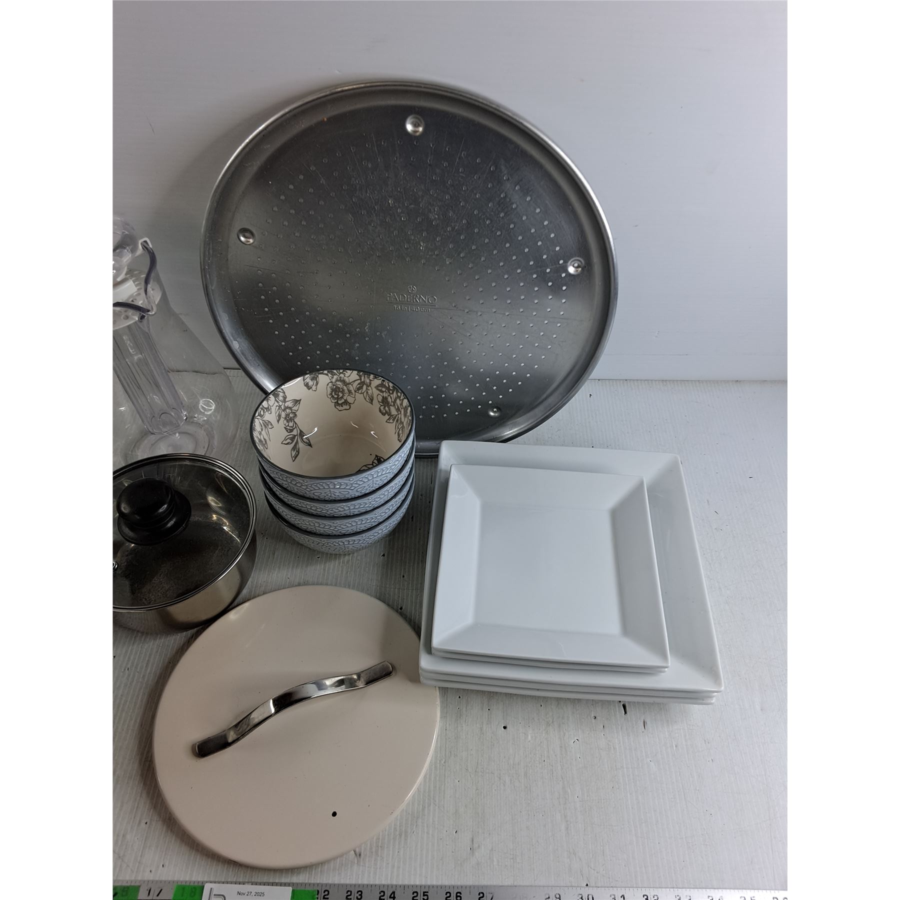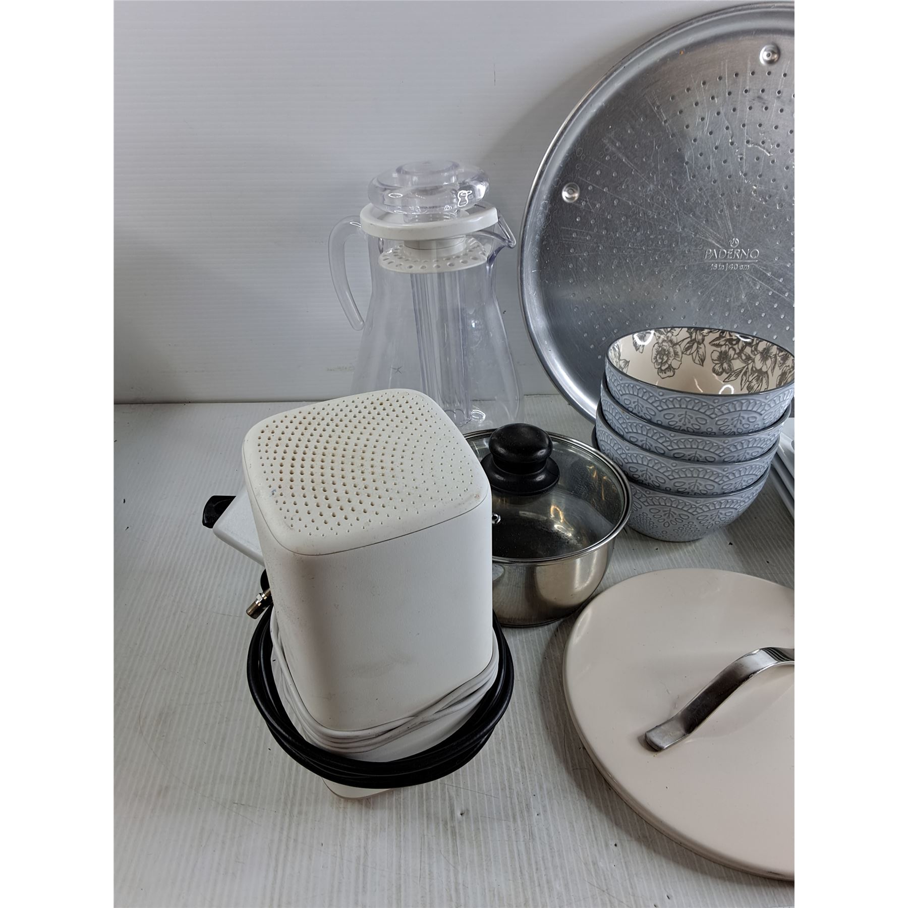 Small Cooking Pot with Lid, Ceramic Dining Plates & Bowls, Plastic Pitcher, WiFi Router- As Is, Misc