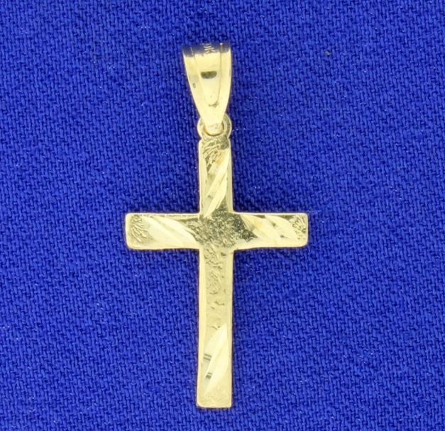 In 10K yellow gold, it is 1 inch long with bale. 1.0g