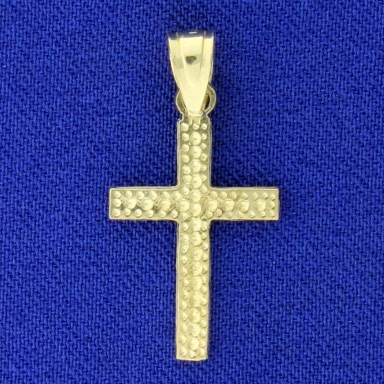 10K yellow gold, it is 1 inch long with the bale. 1.0g
