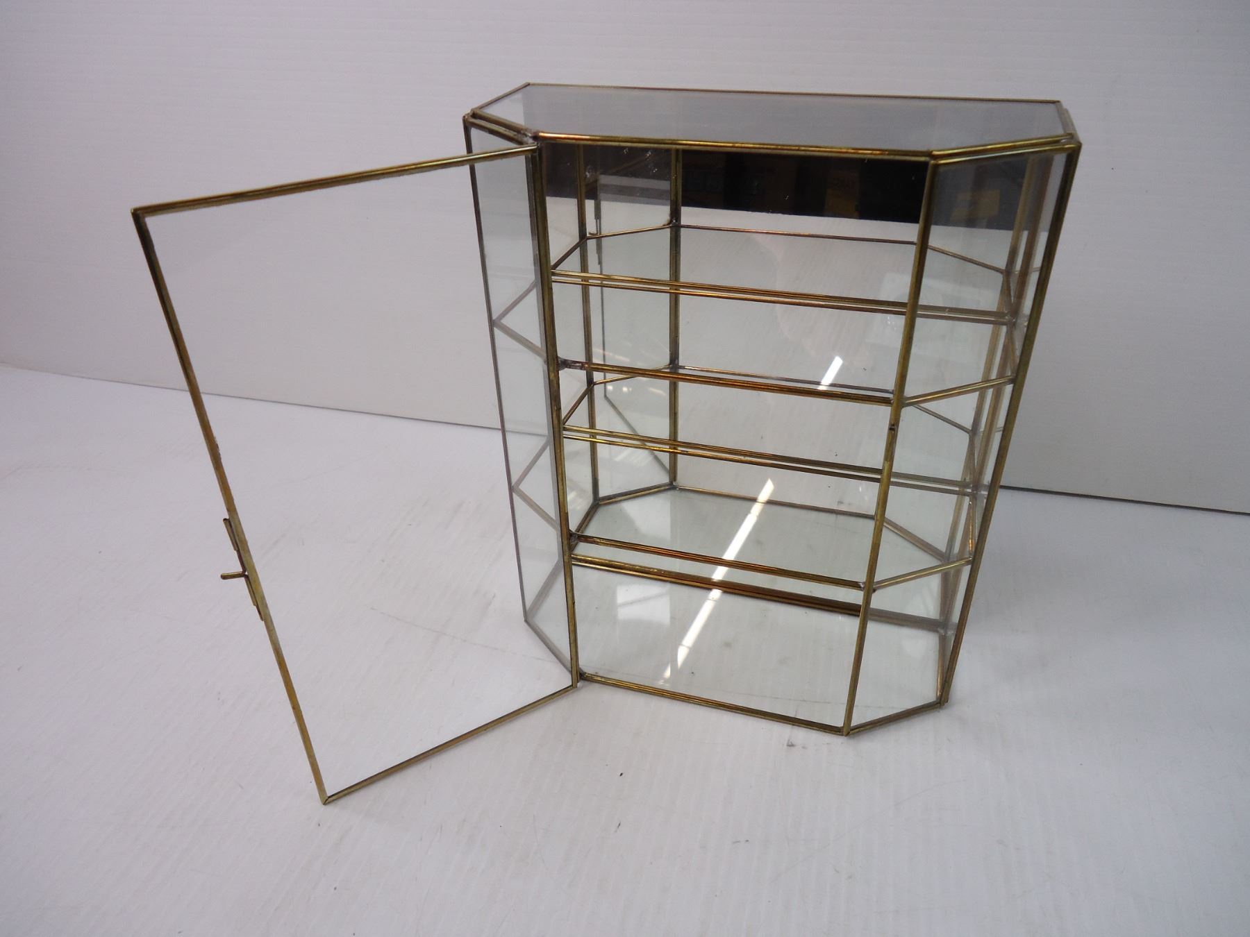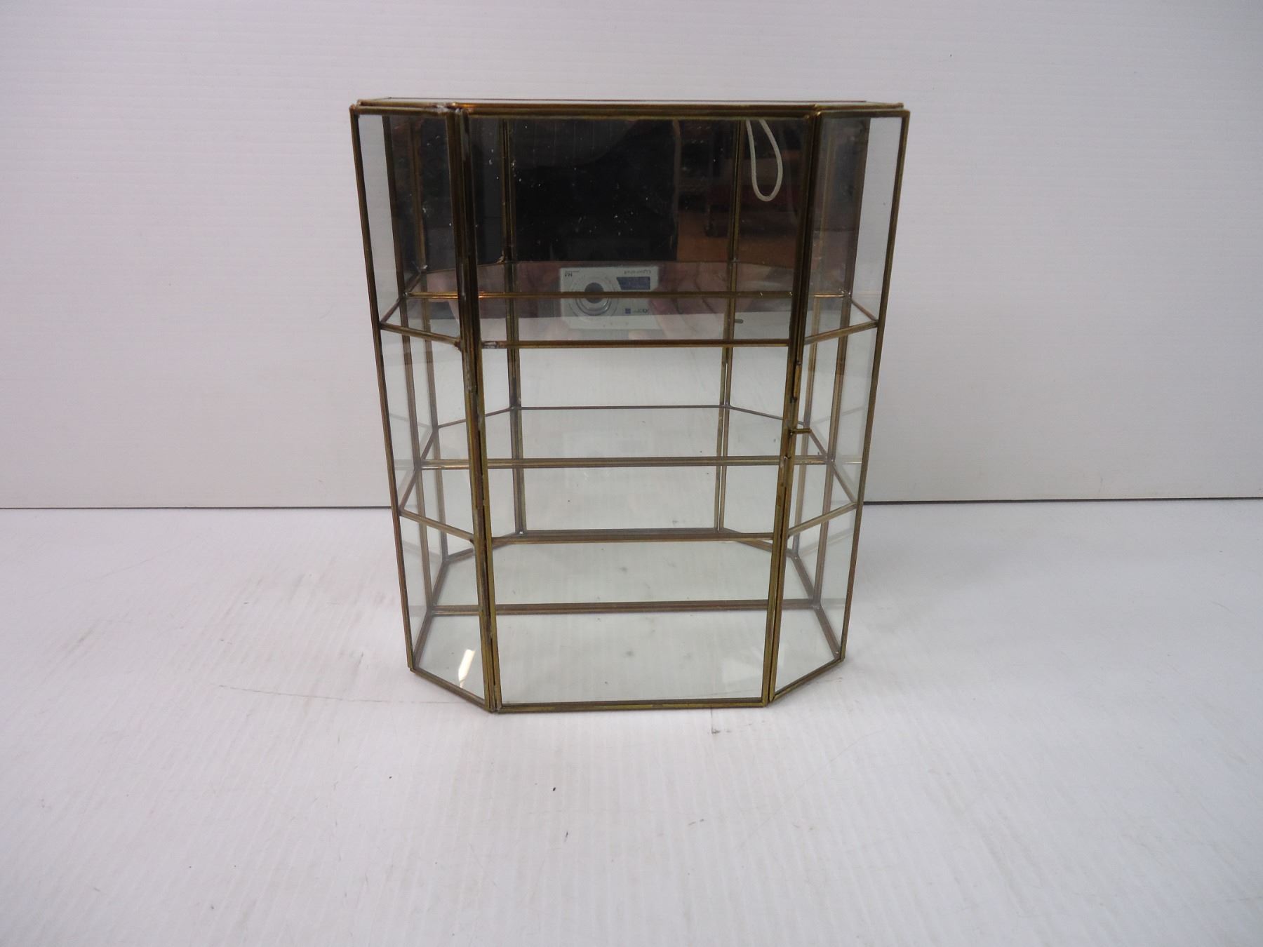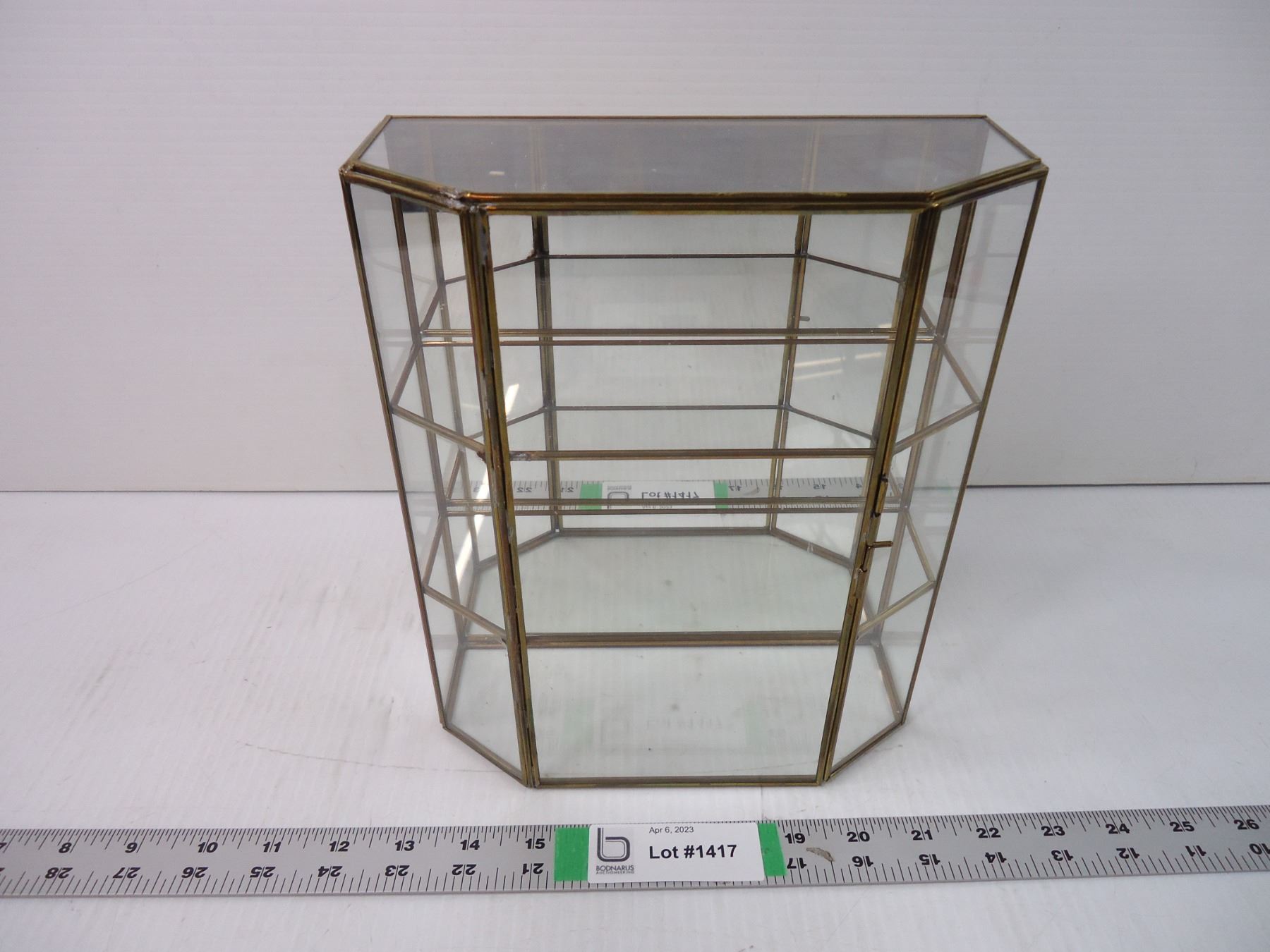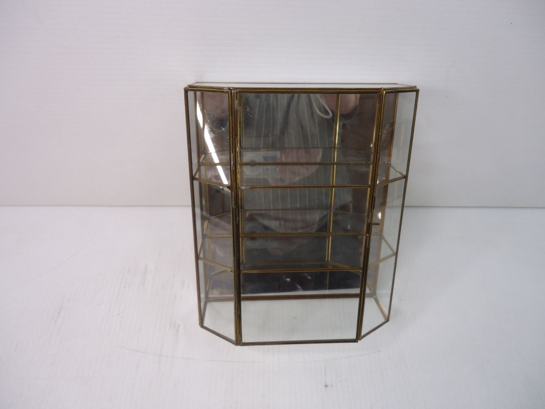 Small Curio Cabinet Brass & Glass -8.5"w by10"tall