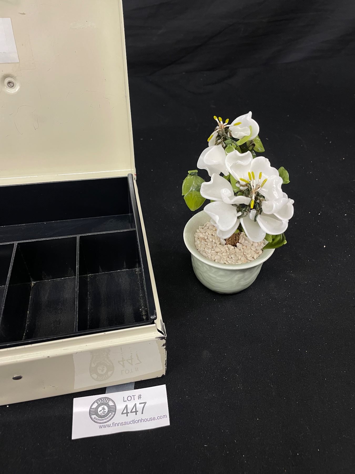 Small Decorative Jade Tree Plus Small Metal Cash Box