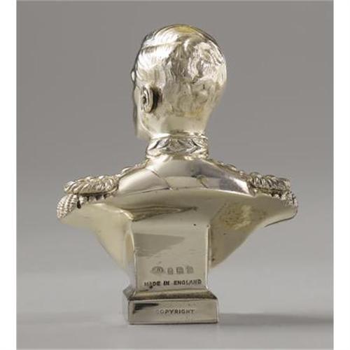 <B>Small English Commemorative Silver Bust of King Edward VIII</B></I><BR><I>Stamped Birmingham, 1936</B></I><BR><BR>Depicting Edward VIII, King of England and Emperor of India (r. 1936) facing right at 3/4 angle wearing military uniform, on a square plinth, also<I> </B></I>stamped <I>Made in England, copyright</B></I>-4 3/8 in. high<BR><BR><BR><b>Shipping:</b> Requires 3rd Party Shipping (<a target="_blank" href="http://www.heritageauctions.com/common/shipping.php">view shipping information</a>)