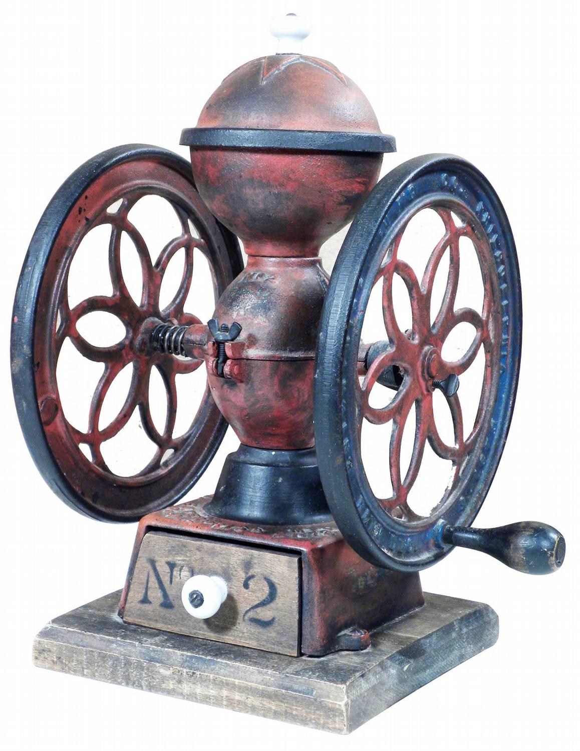 Small Enterprise Mfg Co. Coffee Grinder #2. Philadelphia, USA. Patented 1873. Good original condition. 8 1/2 inch wheel. 13 1/2 inches tall.